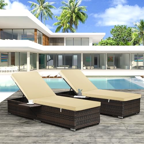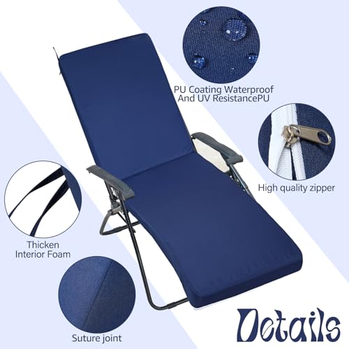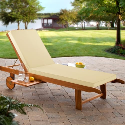 Chaise Lounge Cushion for Outdoor Furniture, Waterproof Fade and Tear Resistant Lounge Deck Chair Cushions for Patio Lawn Pool Resort Hotel, 72x21x3 Inch, Beige