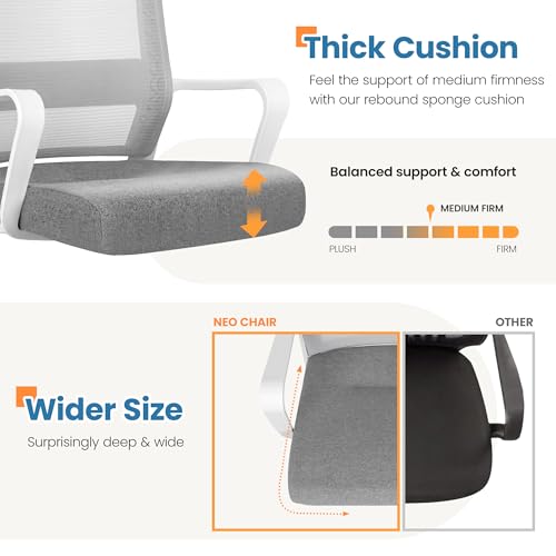 NEO CHAIR Office Desk Computer Gaming Chair for Home Ergonomic Mid Back Cushion Mesh Chair with Wheels Lumbar Support Comfy Swivel Adjustable Rolling Comfortable Bedroom Vanity (Black)