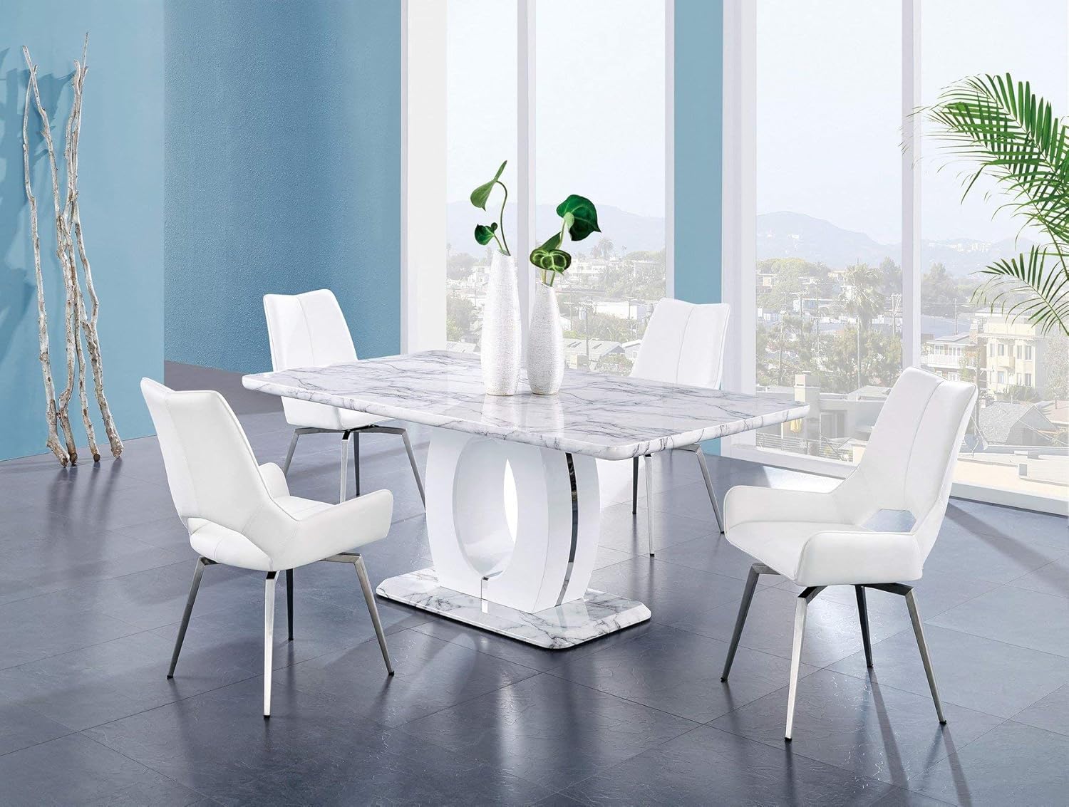 Global Furniture USA Global Furniture Faux Marble Pedestal Base Dining Table, BR