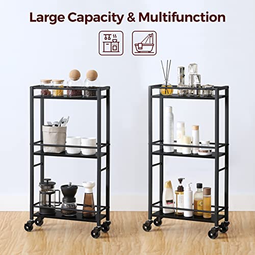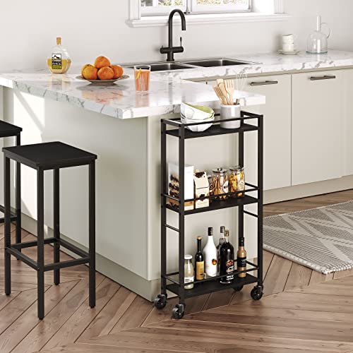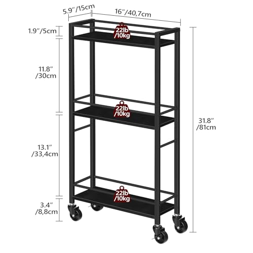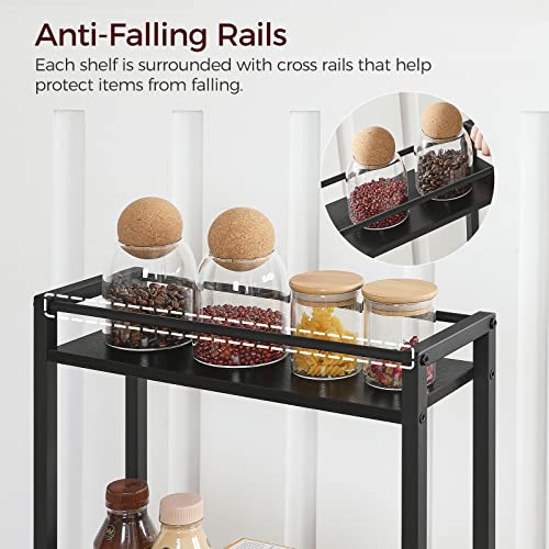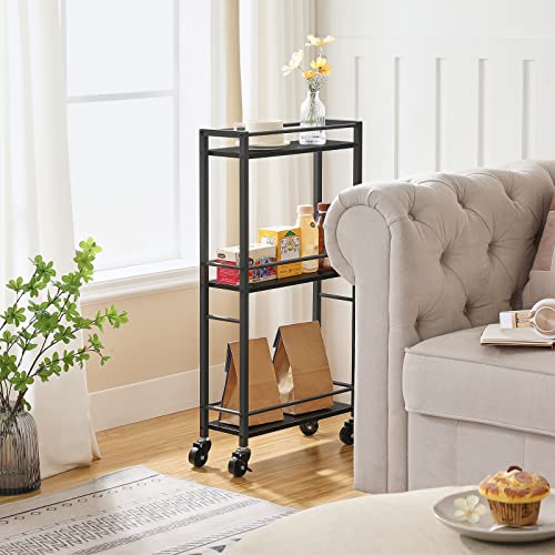 Rolling Cart, Mobile Kitchen Cart on Wheels, Narrow Storage Cart for Small Space, Wooden Service Cart, for Bathroom, Laundry, Living Room, Rustic Brown RCHR4001