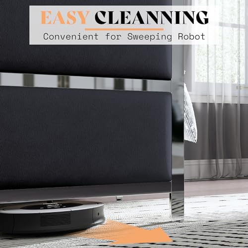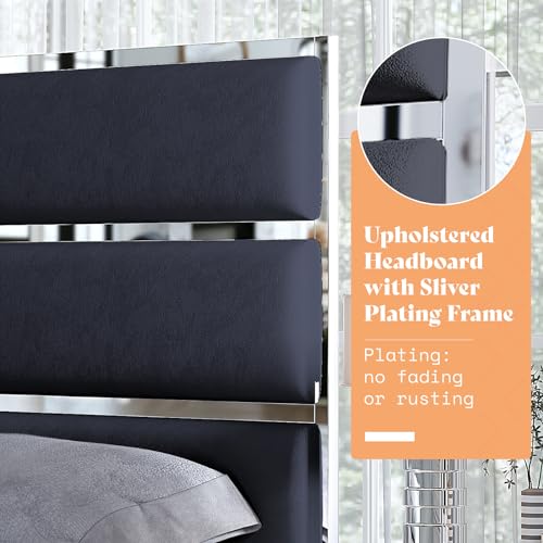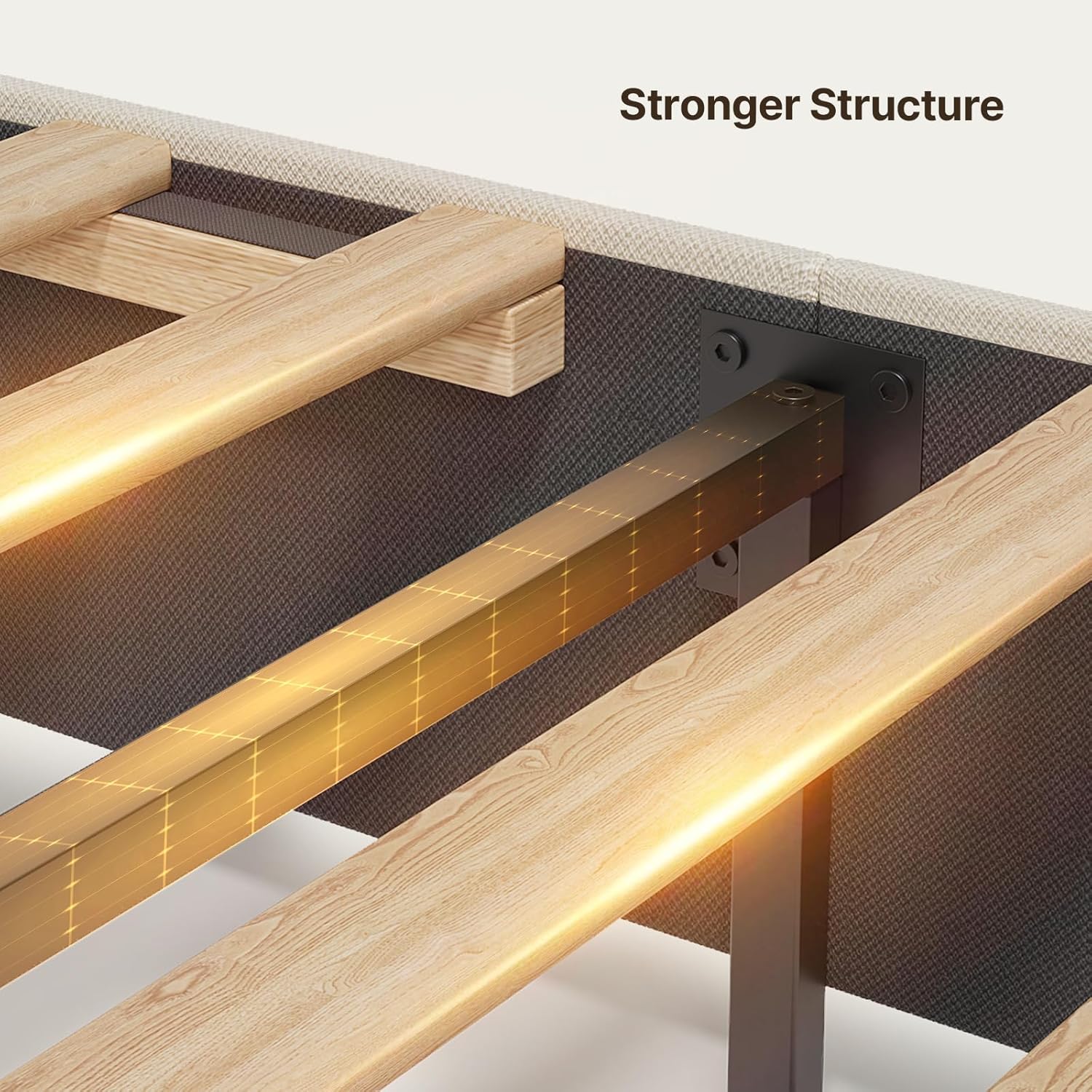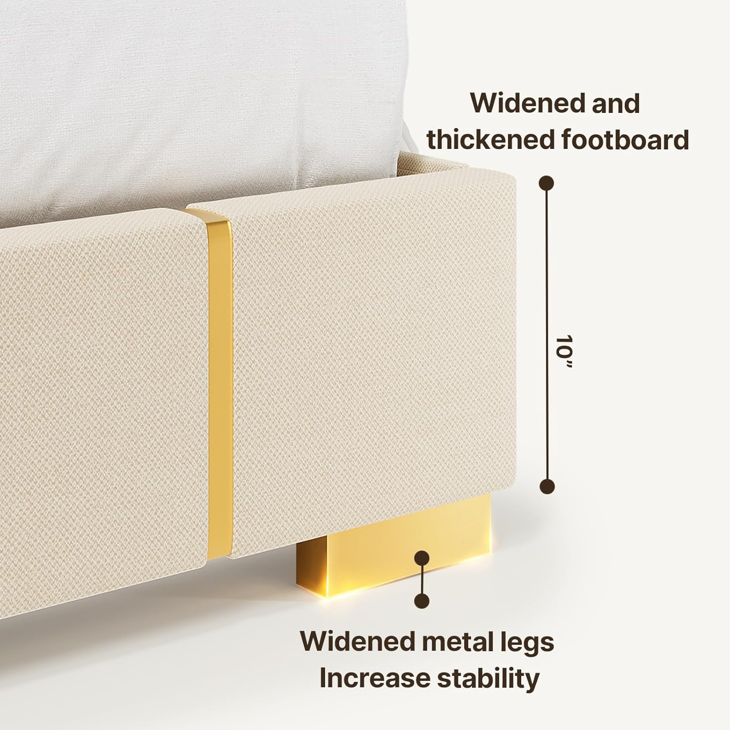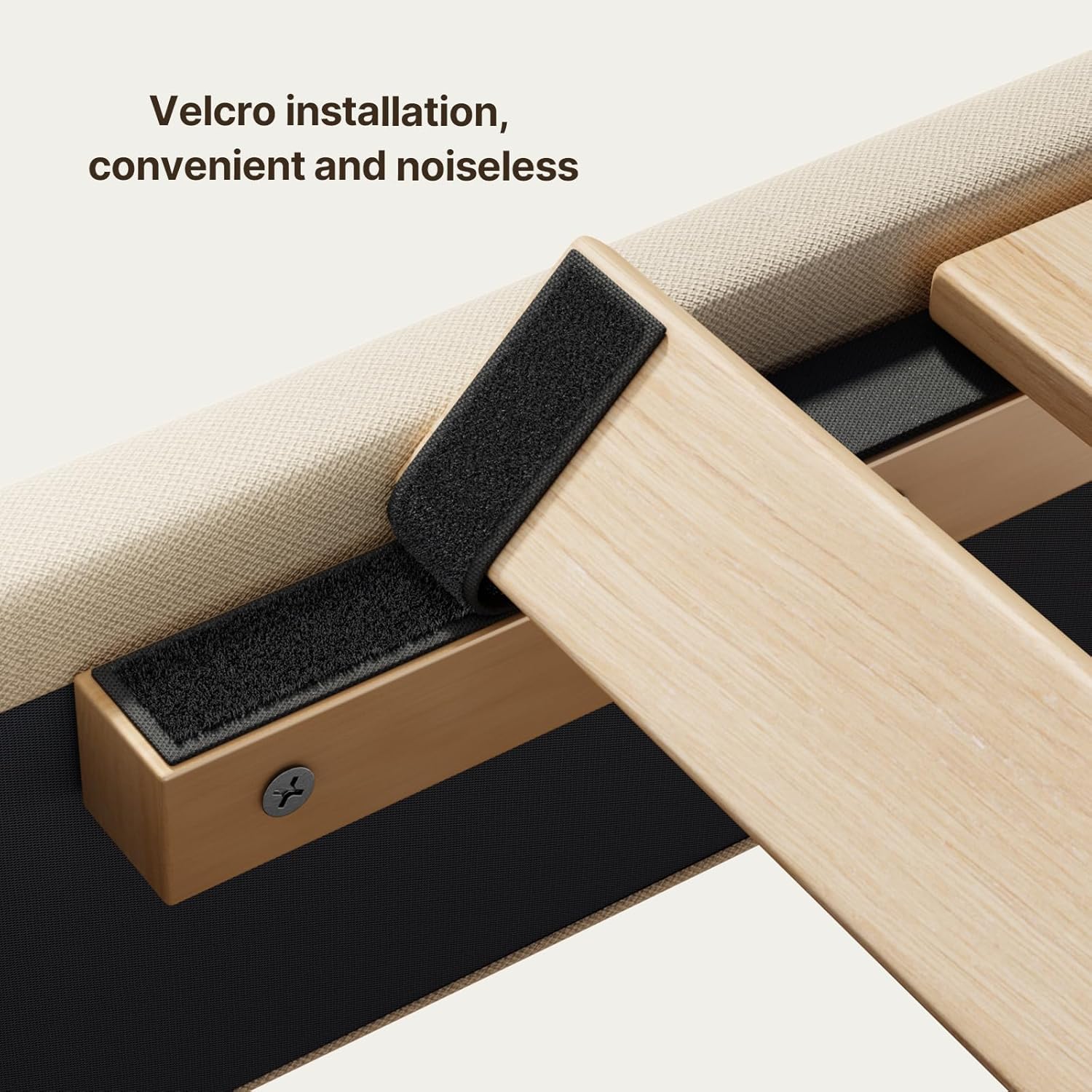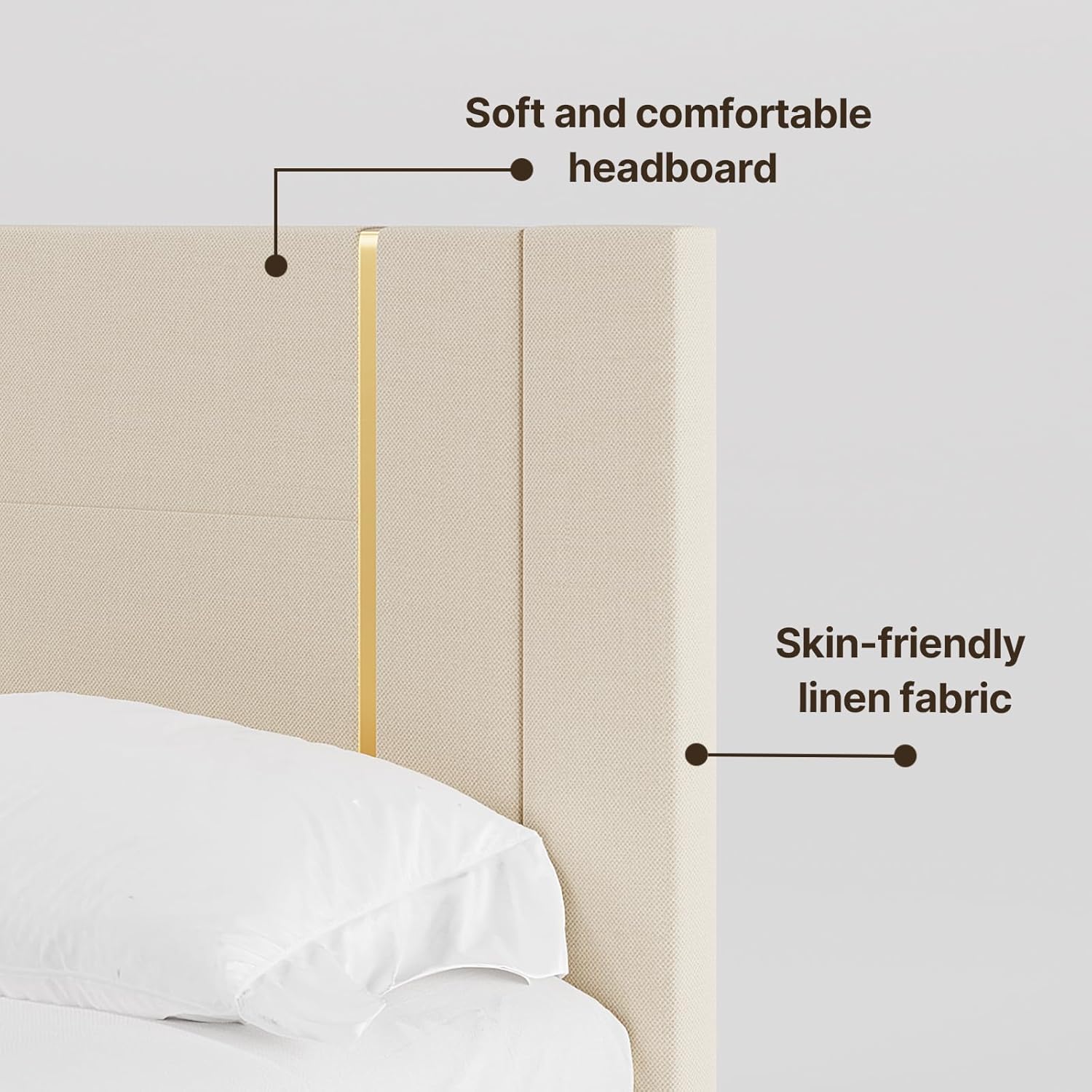 Gizoon Upgrade Queen Bed Frame, Upholstered Platform Bed Frame with Modern Headboard, Sturdy Metal Frame, Wooden Slats, Velcro Fastener, Easy Assembly, Noise-Free, No Box Spring Needed, Beige