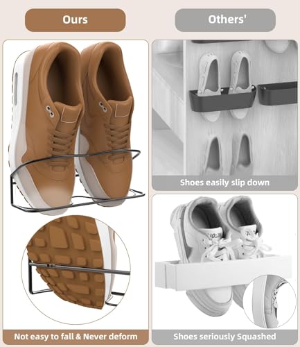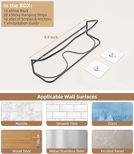 Wall Mounted Shoe Rack 10Pack, with Sticky Hanging Strips, Metal Wall Shoe Storage, Hanging Shoe Organizer for Wall/RV/Door