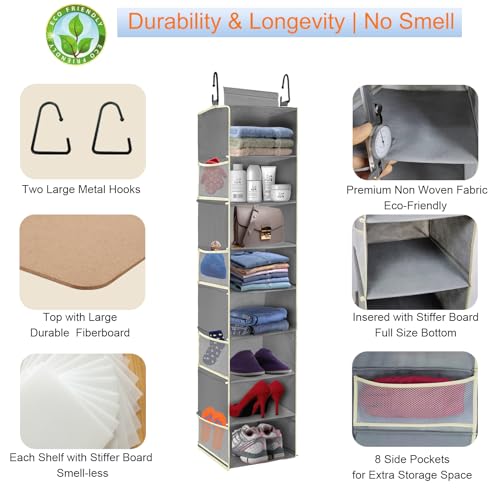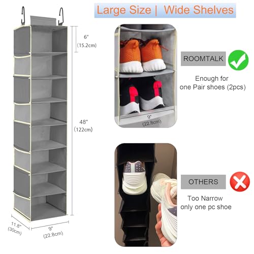 2 Pack Large-Sized Hanging Shoe Organizer 8-Shelf, Hanging Closet Organizer with 8 Side Pockets, Wider Hanging Shelves for Storage Shoes Clothes 9" W × 11.8" D× 48" H, Black.