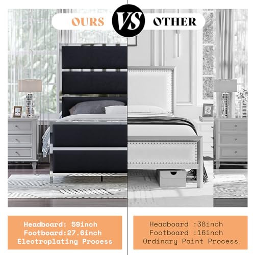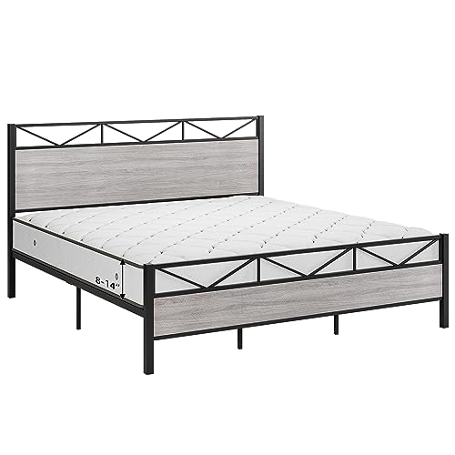 Queen Bed Frame with Headboard and Footboard, Heavy Duty Platform Bed, Metal Slats Support, No Box Spring Needed, Noise Free, Easy Assembly, Grey
