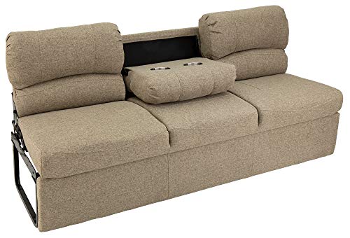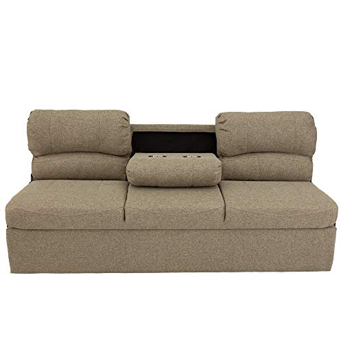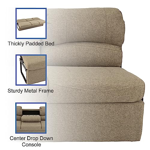RecPro 62" RV Jackknife Sleeper Sofa with Drop-Down Console | Cloth Fabric | 2 Colors to Choose from | Furniture for RV and Camper (Fossil Cloth)