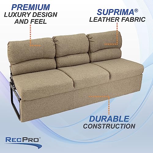 RecPro Charles RV 72" Jackknife Sofa | Love Seat | Sleeper Sofa | RV Furniture | RV Couches | Cloth (Oatmeal)
