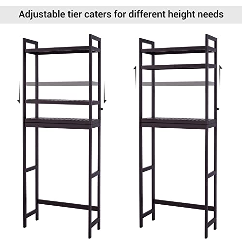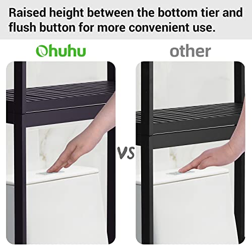 Ohuhu Over The Toilet Storage Shelf, Bamboo 3-Tier Over Toilet Bathroom Organizer Space Saver Stand Rack, Adjustable Shelves Above Toilet with Paper Holder and 3 Hooks for Restroom Laundry, Brown