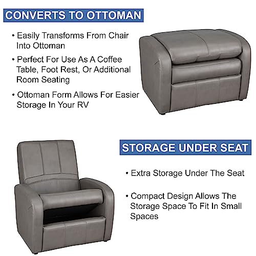 RecPro Charles RV Gaming Chair Ottoman Conversion | Built-in Storage | RV Furniture | Great for Teens | Mahogany
