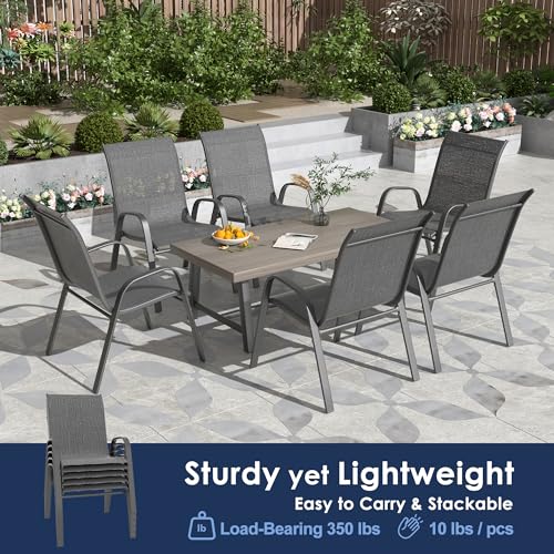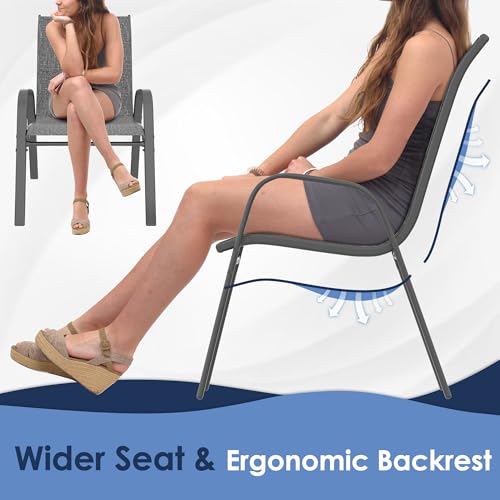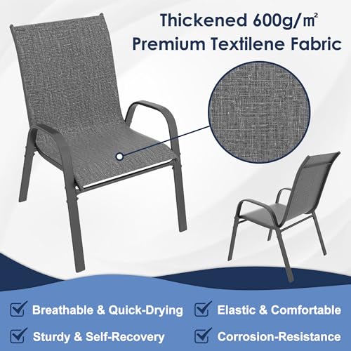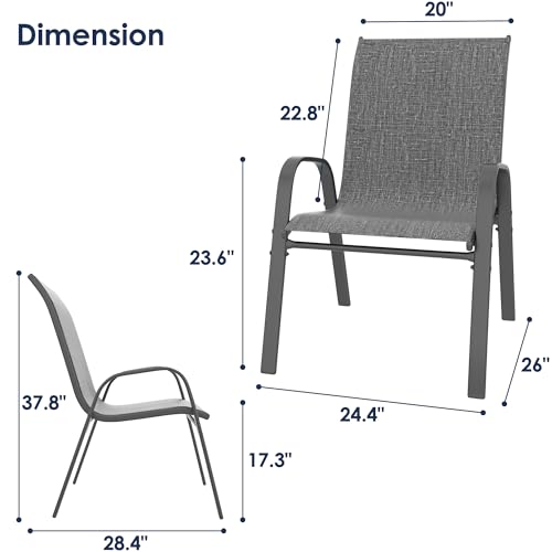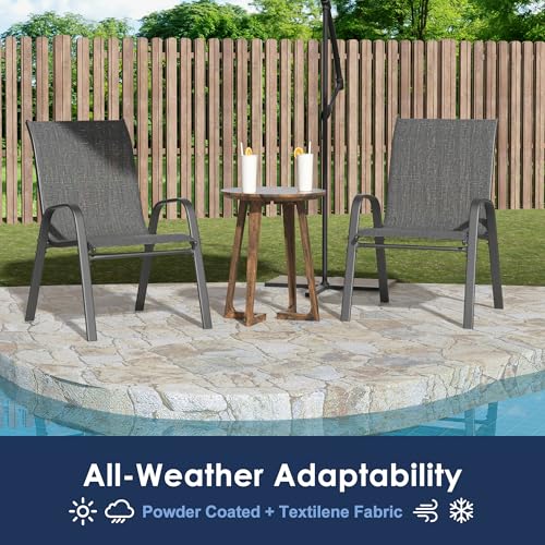 Xilingol Patio Chairs Set of 2, Outdoor Lightweight Stackable Dining Chairs w/All-Weather Textilene Fabric & Metal Frame, 350LBS Capacity, Outdoor Furniture for Pool Deck, Backyard, Garden (Khaki)