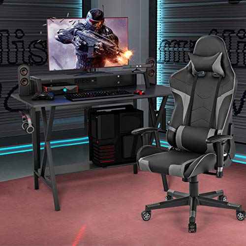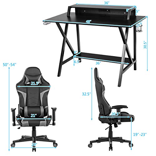 Tangkula Gaming Desk and Chair Set, Ergonomic E-Sport Gamer Desk & Racing Chair Set w/Cup Holder, Monitor Stand, Earphone Hook, Massage & Headrest, Home Office Computer Desk Chair Set (Blue)