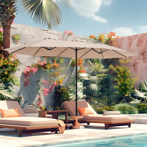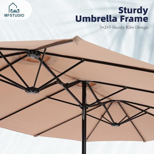 MFSTUDIO 15ft Double Sided Patio Umbrella with Base Included, Outdoor Large Rectangular Market Umbrellas with Crank Handle for Deck Pool Shade