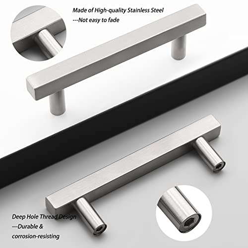 Probrico 100 Pack Cabinet Handles Stainless Steel 4 inch (102mm) Hole Centers Square T Bar Kitchen Cabinet Handles Drawer Pulls for Kitchen Furniture Hardware