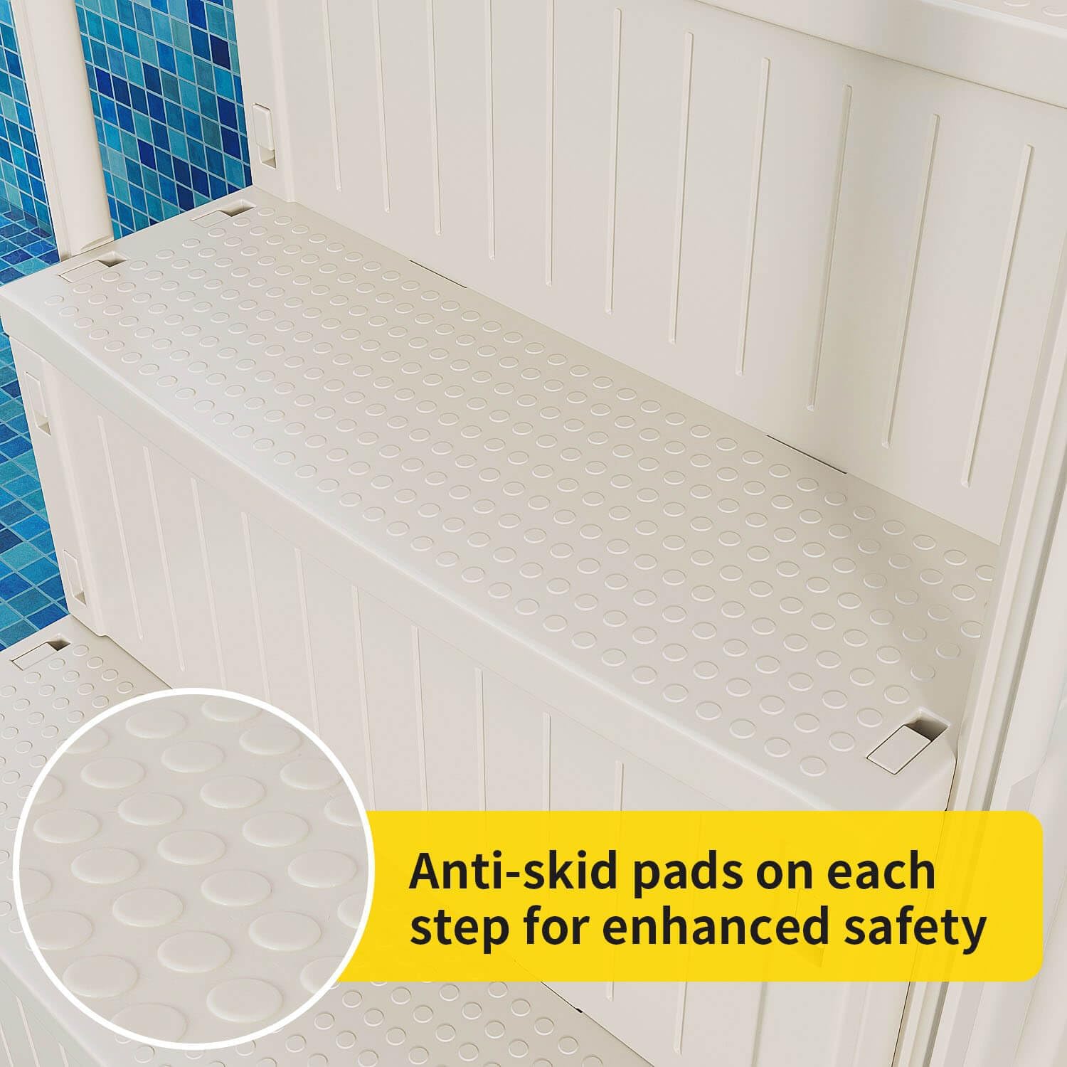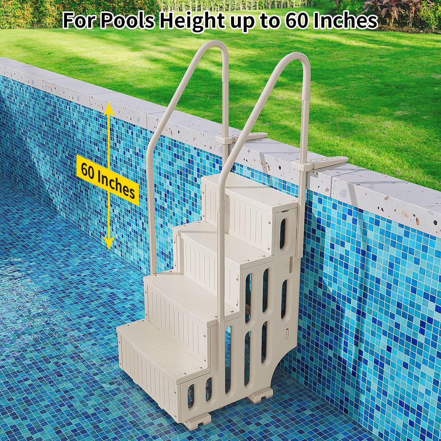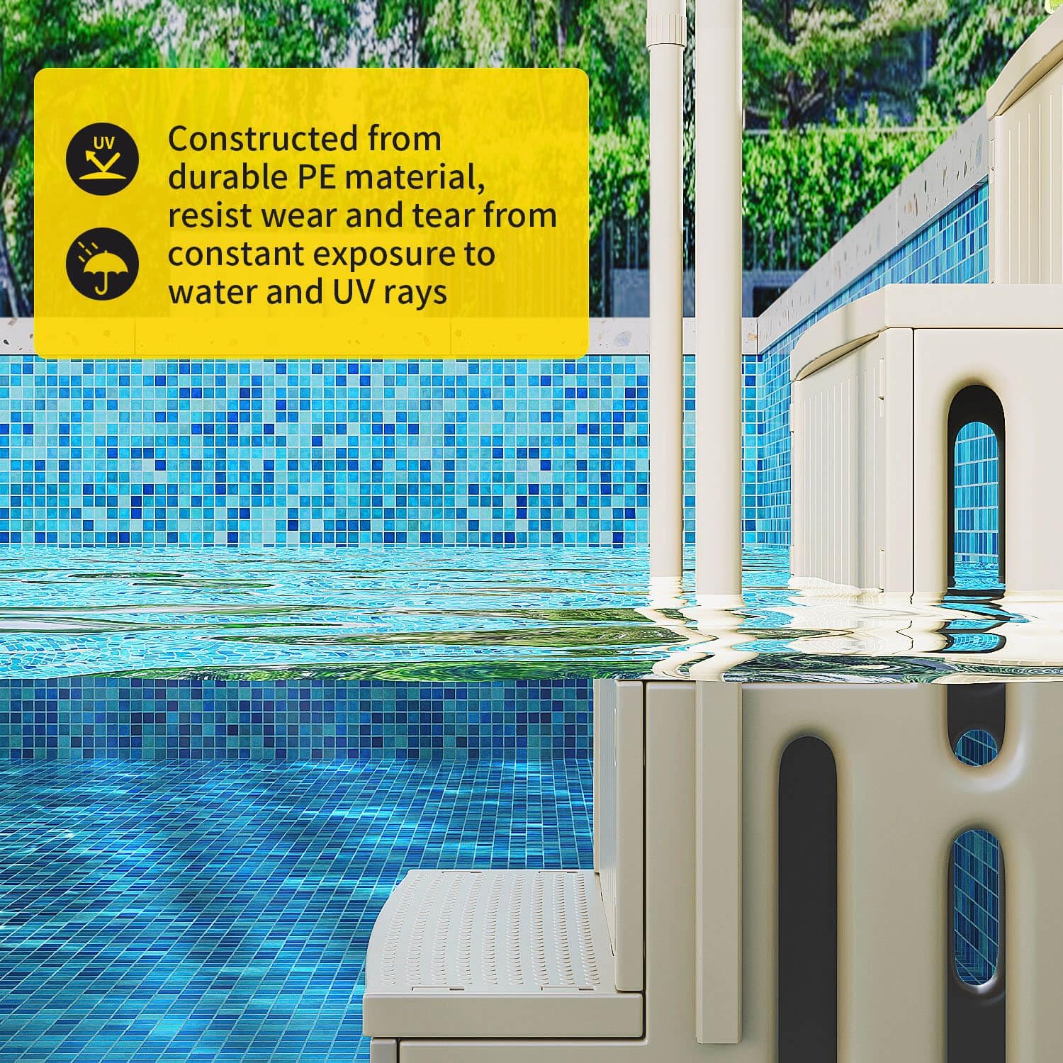 Pool Ladder Above Ground for 60'' High Wall Pools, 400lb Load, Plastic Heavy Duty Swimming Pool Steps Above Ground, Anti-Slip Pool Stairs Entry System with Double Handrails, White