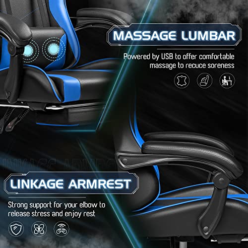 Homall Gaming Chair, Video Game Chair with Footrest and Massage Lumbar Support, Ergonomic Computer Chair Height Adjustable with Swivel Seat and Headrest (Blue, RGB)