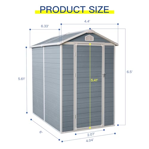 6x4ft Resin Outdoor Storage Shed Kit- to Store Patio Furniture,Grey Storage & Home Organization