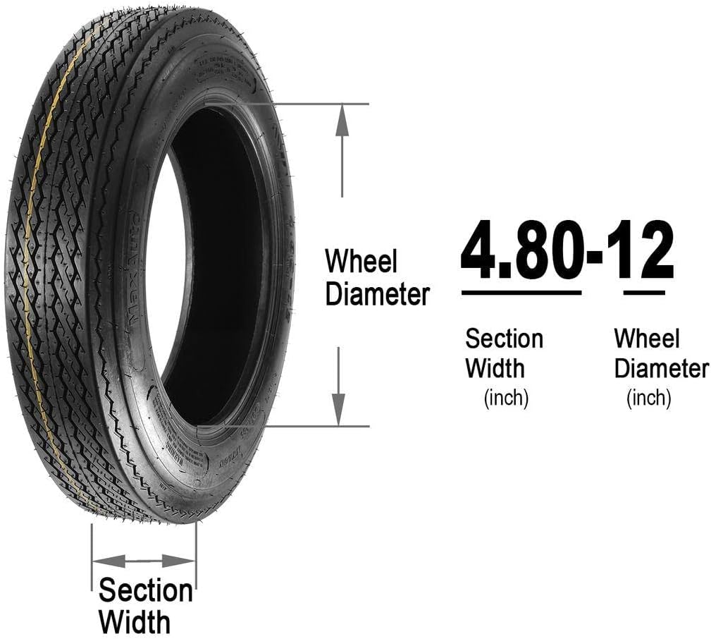 MaxAuto 4.80-12 480-12 4.80x12 Boat Trailer Tires 6PR Load Range C, Set of 2