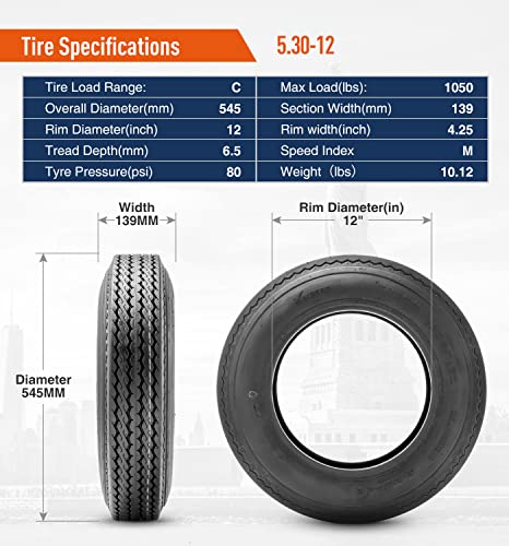 eCustomRim 2-Pack Trailer Tire and Rim 530-12 5.30-12 530X12 Load B 5 Lug White Modular Wheel - 2 Year Warranty w/Free Roadside