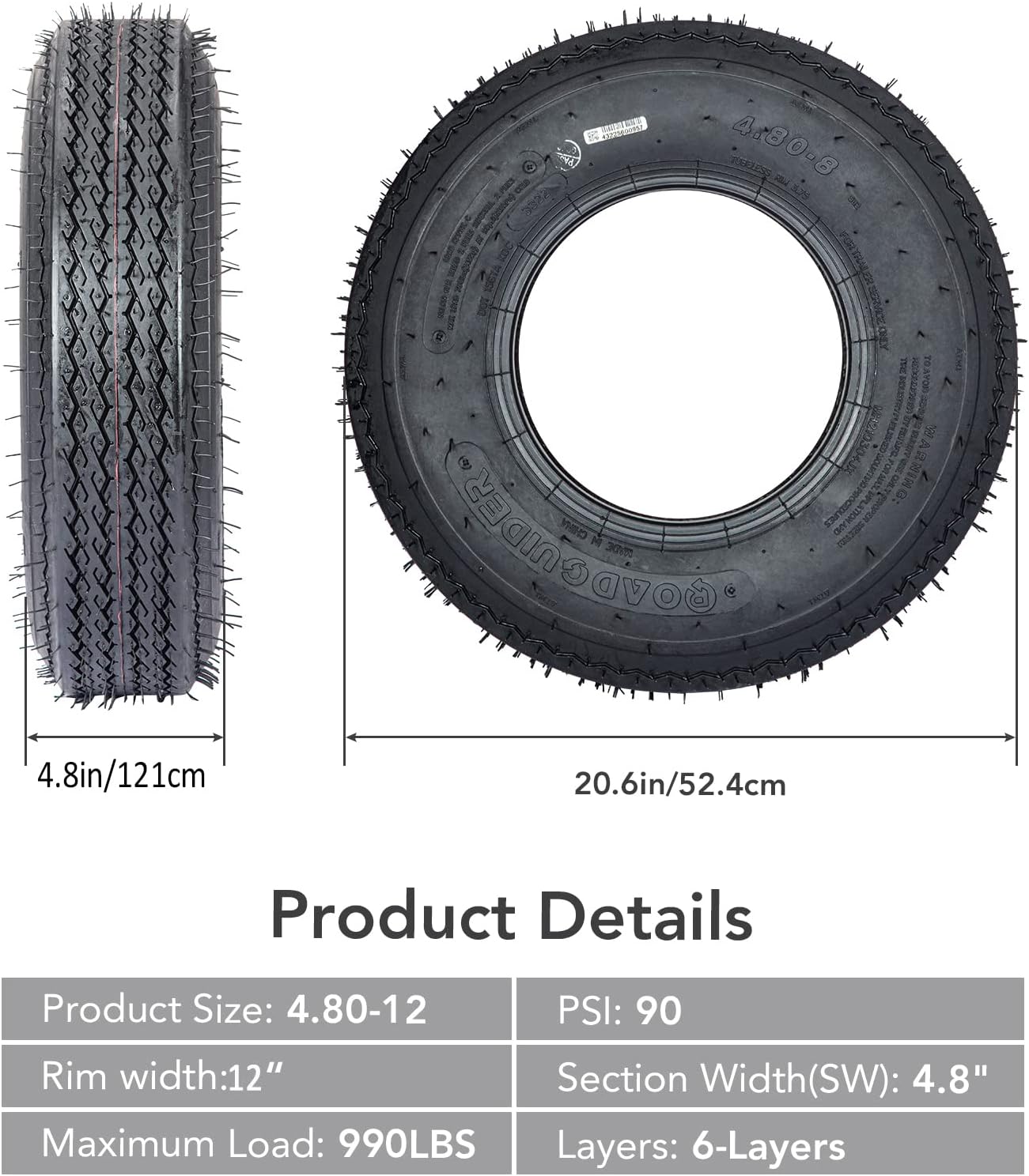 MaxAuto 4.80-12 Boat Motorcycle Trailer Tires,4.8-12 Golf Cart Utility Trailer Tires,6PR/C,2 Pack