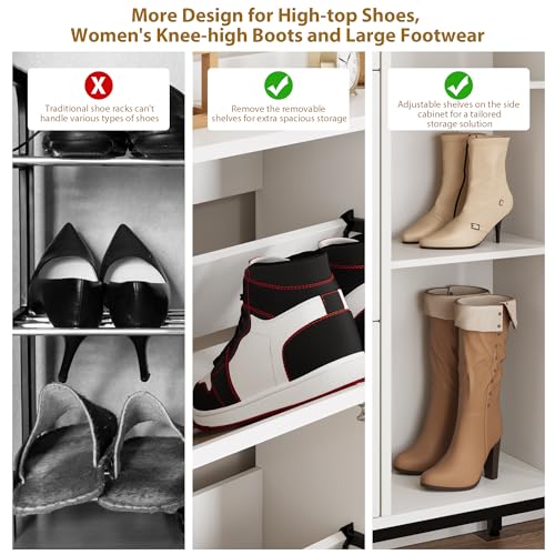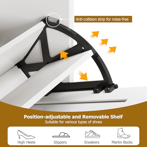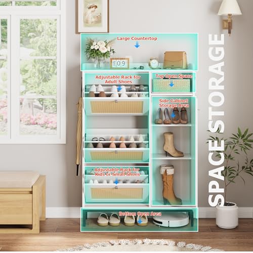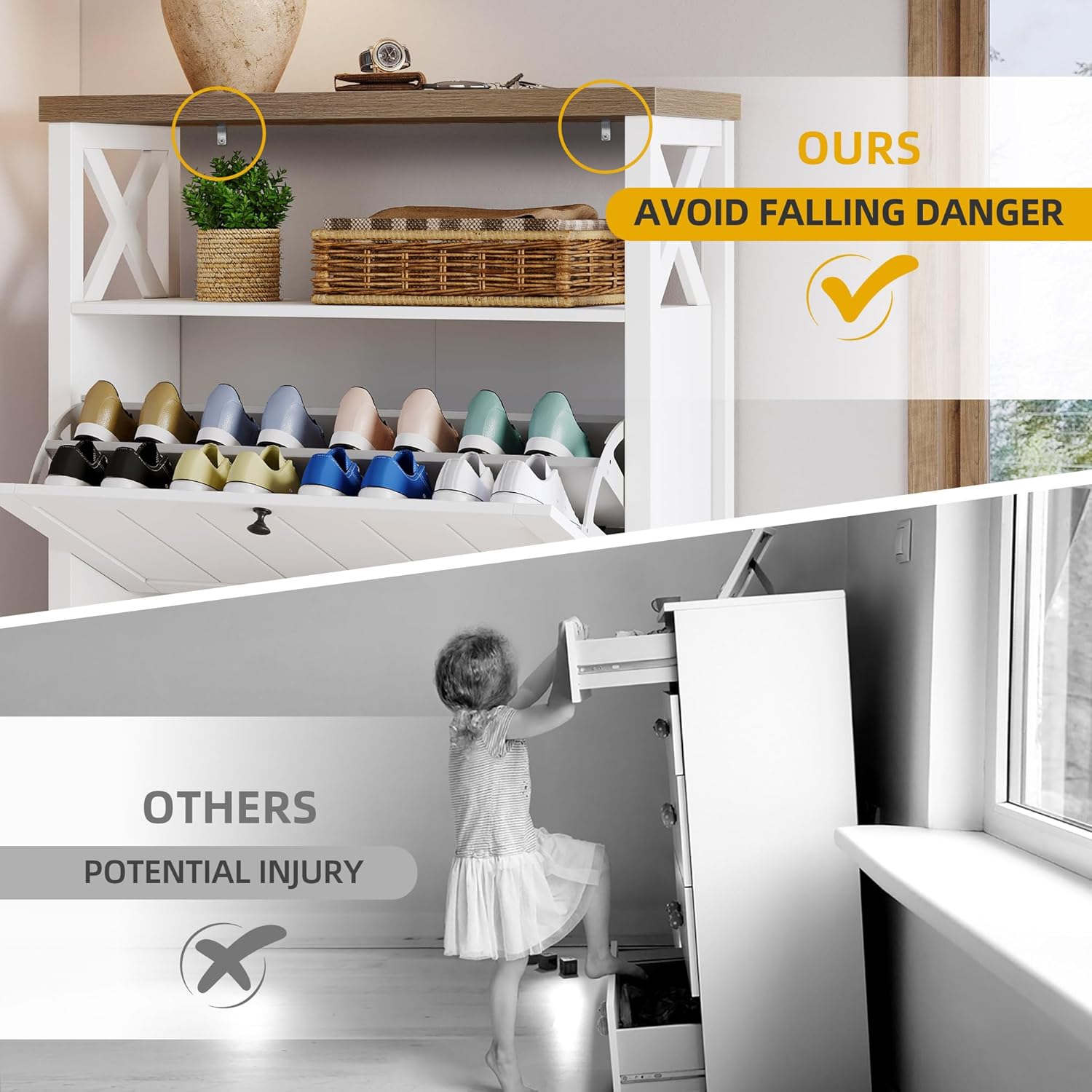 DWVO Shoe Cabinet Entryway, White Shoe Storage Cabinet with 2 Flip Drawers, Free Standing Hidden Narrow Shoe Rack Shoe Storage Organizer for Entryway/Hallway/Closet, White