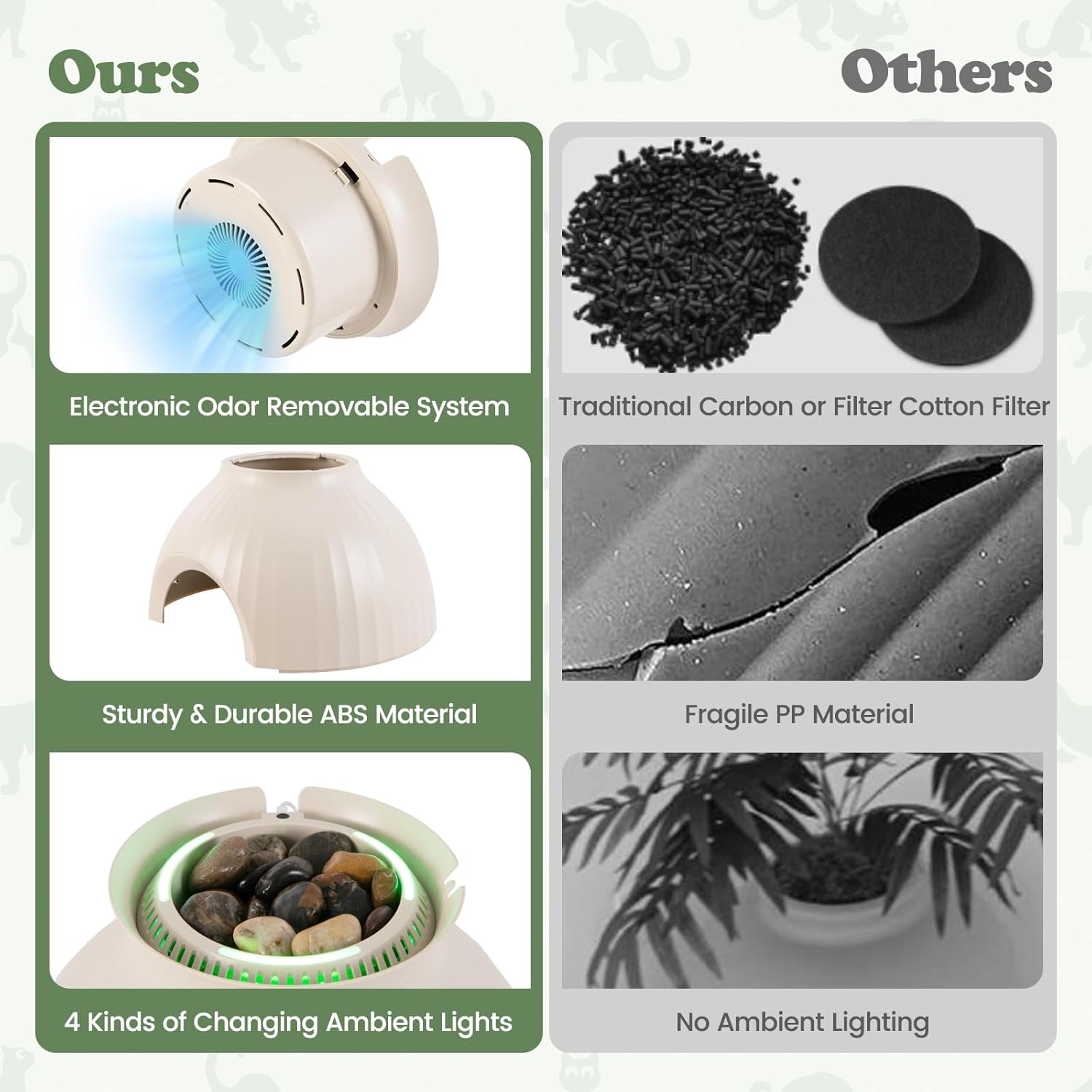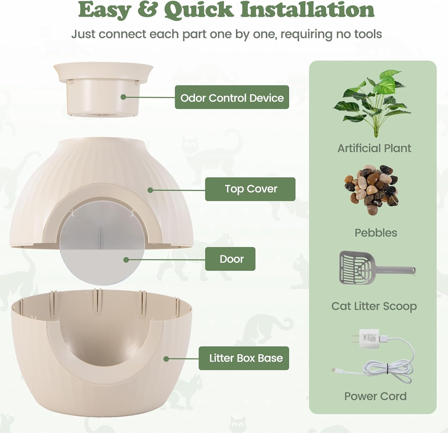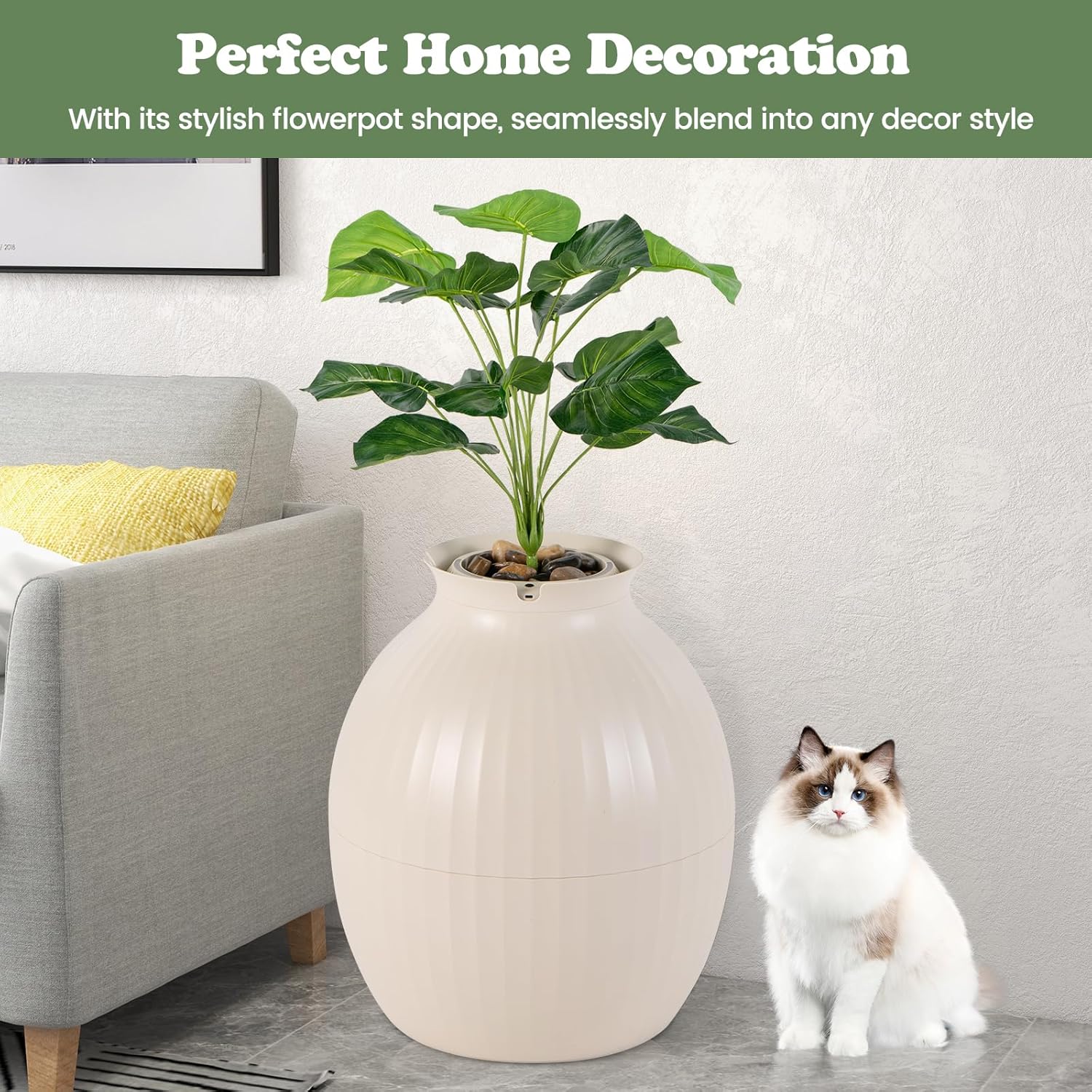 Giantex Cat Litter Box Plant - Hidden Litter Box Furniture with lights, Electronic Odor Removal System, Door, Scoop, Artificial Plant, Cat Litter Box Enclosure Planter Home Decor, Easy to Clean