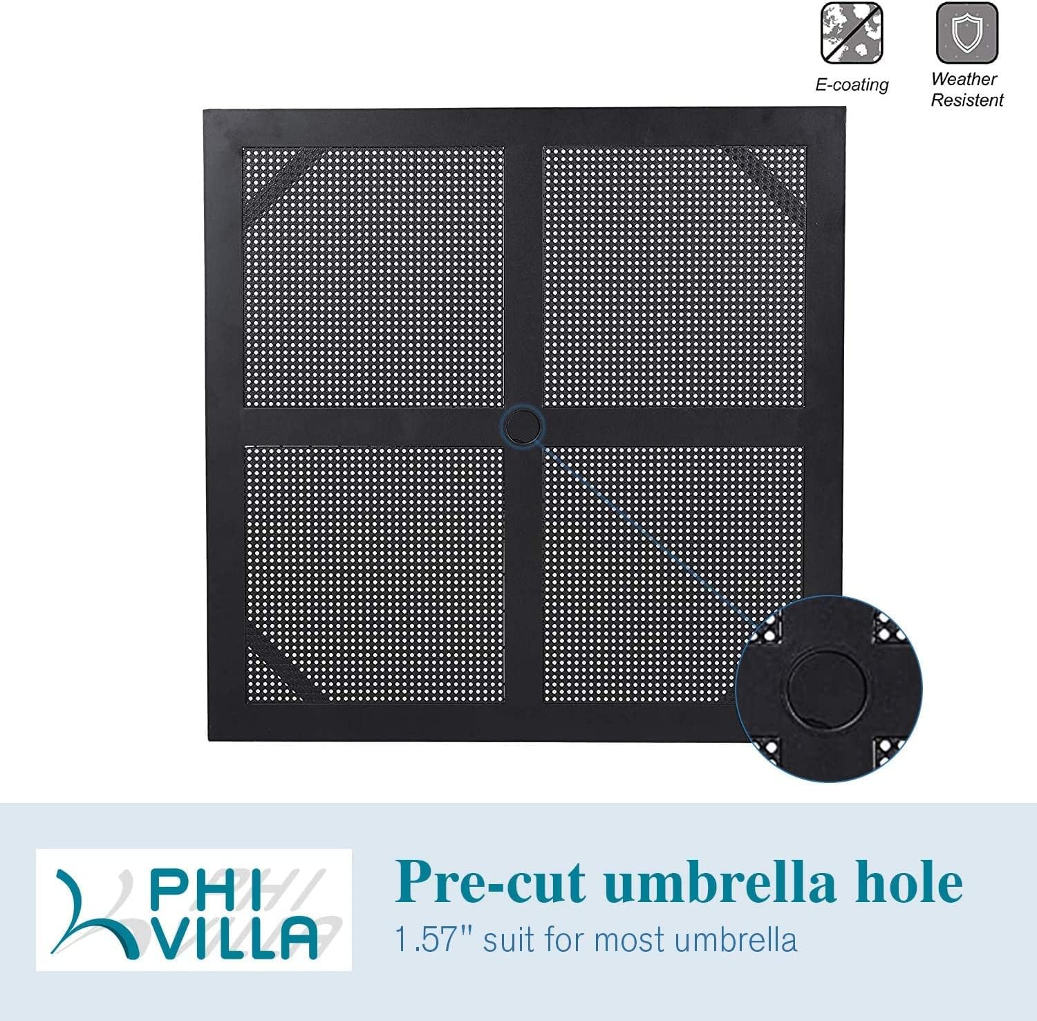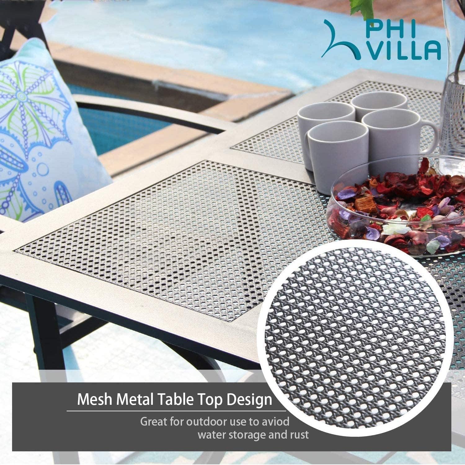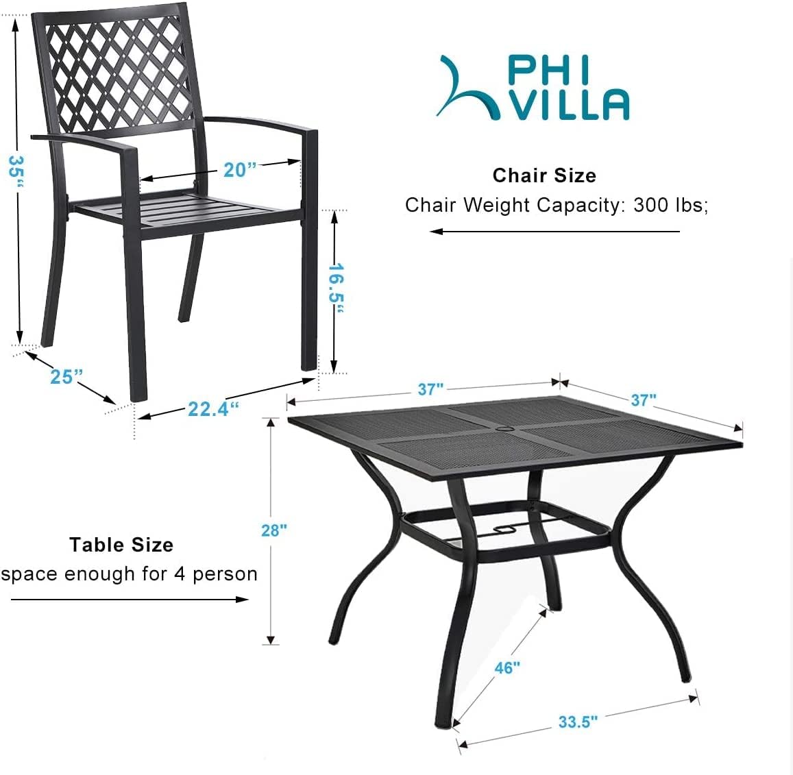 PHI VILLA Patio Dining Set Wrought Iron Outdoor Table and Chairs Furniture Set 5 Piece, 37" Square Bistro Table with Umbrella Hole and 4 Backyard Garden Chairs Support 300LBS for Deck, Lawn, Garden