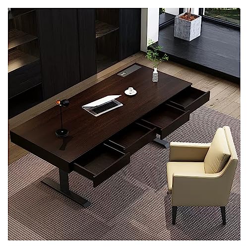 Work Desk Modern Smart Electric Lift with Drawers and Dual Motors for Home Computer Desk Office Desk Office Boss Computer Desk Computer Desk(A-Black,120cm)