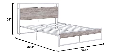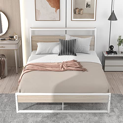 Merax Modern Metal Platform Bed with Headboard/USB Ports and Drawers, Wood Bed Frame with Steel Slat Support/Easy Assembly Queen Black