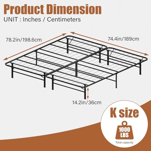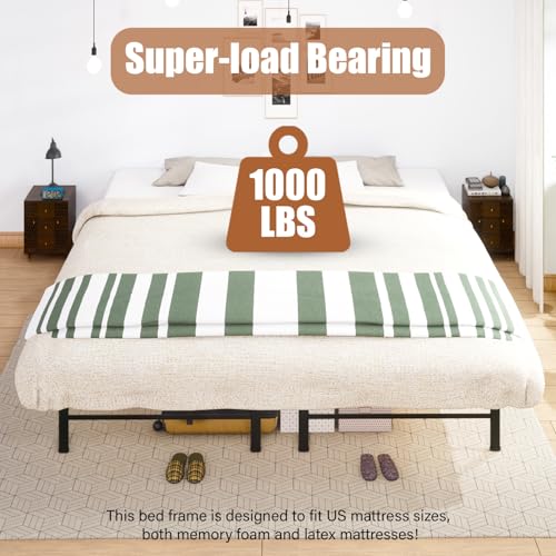 Queen Bed Frame 14IN Metal Platform Bed Frame 14.2 Inch Classic Mattress Foundation Storage Space Under The Bed Heavy Duty Frame Bed&Noise Free&Box Spring Replacement &Easy Assembly,Queen