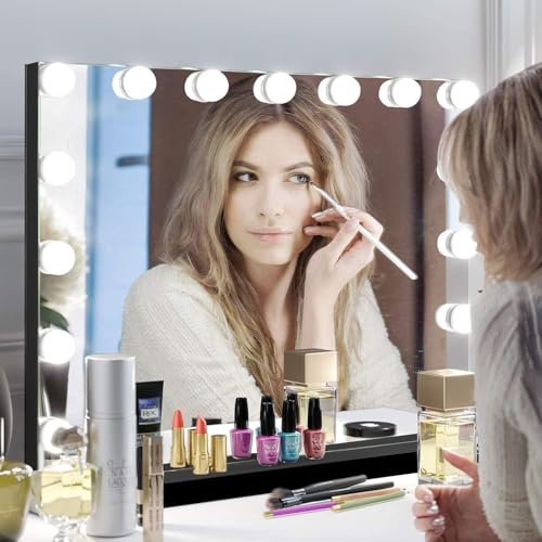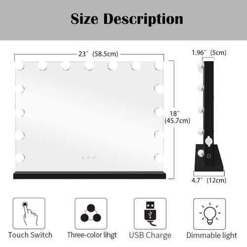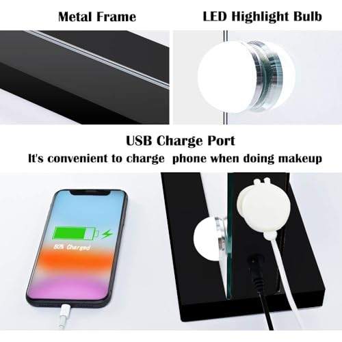 Makeup Vanity Mirror with Lights, 31.5"x 23.6" Large LED Lighted Mirror with 10X Magnification and USB Charging Port, Smart Touch 3 Colors Dimmable, Touch Control for Bedroom, White