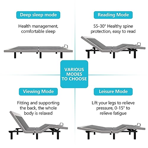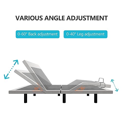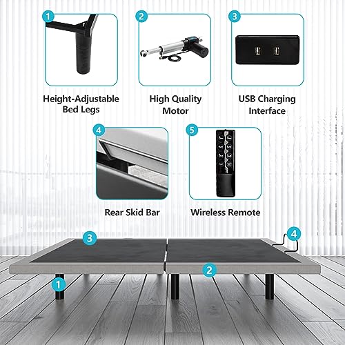 Electric Adjustable Bed Frame- Queen Size, Lift Motor & Wireless Remote, Ergonomic Upholstered Bed Frame, Massage, Under Bed Lighting, Dual USB Ports, Independent Head and Foot Tilt