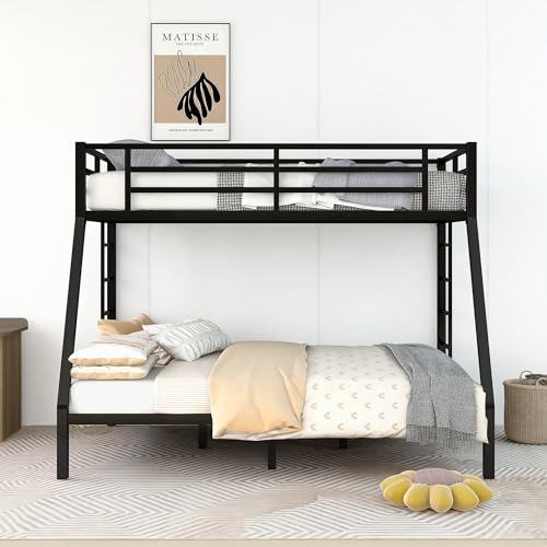 Metal Bunk Bed Frame - Twin XL over Queen for Teens & Adults, Space-Saving, Noise-Reducing, No Box Spring Required