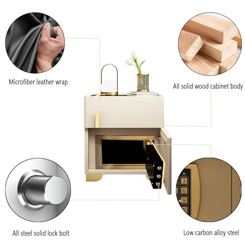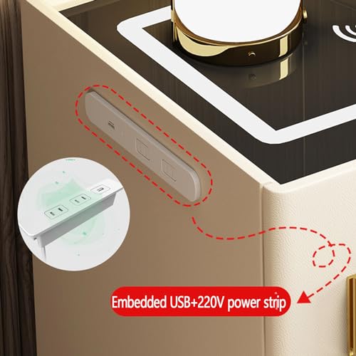 Smart Nightstand with Hidden Safe, Bedside Table with Charging Station & USB/Type-C Ports, LED Night Stand Adjustable Brightness, Tempered Glass Top (Color : Dark Gray, Size : 35x40x50cm)
