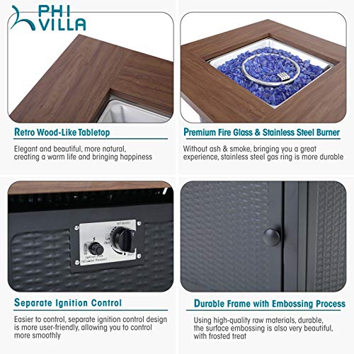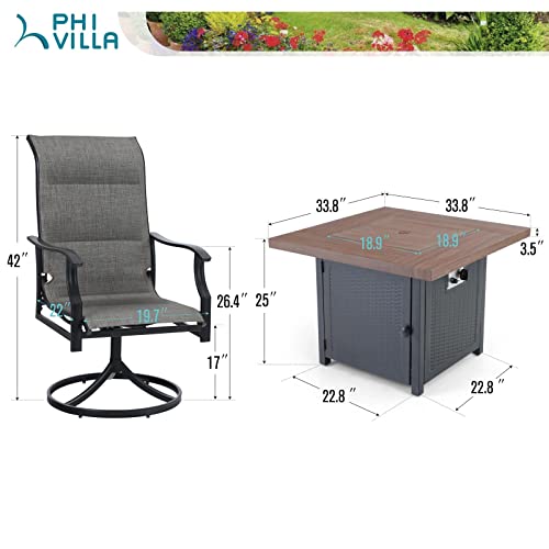 PHI VILLA 5 Piece Patio Dining Set with 34" Fire Pit Table, 4 Outdoor Swivel Chairs Textilene Fabric & 50000 BTU Auto-Ignition Propane Gas Firepit Table
