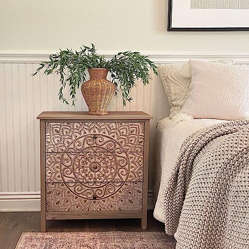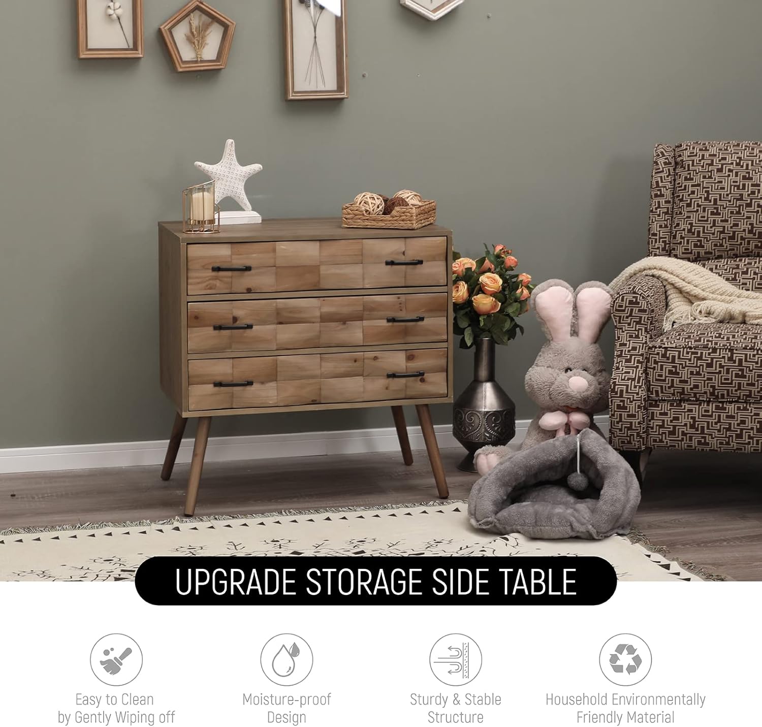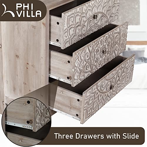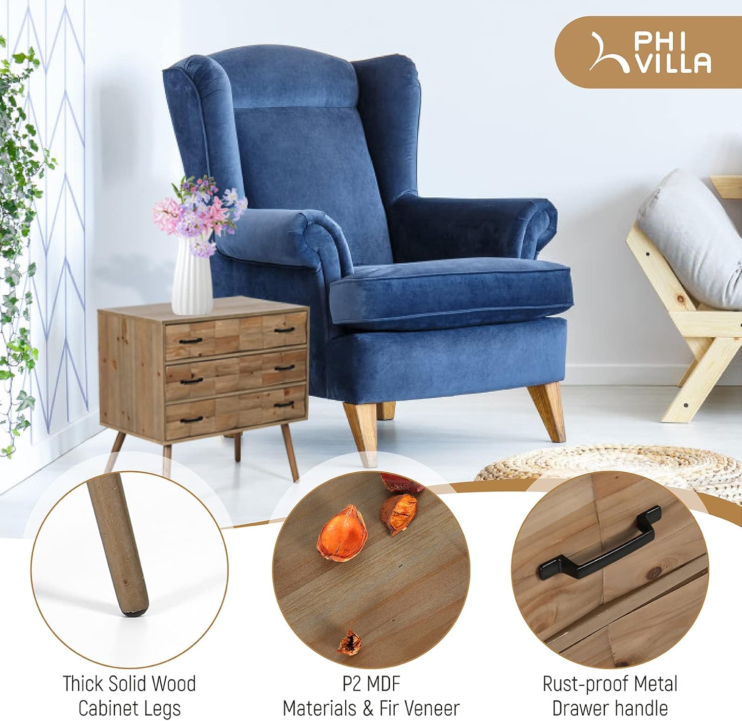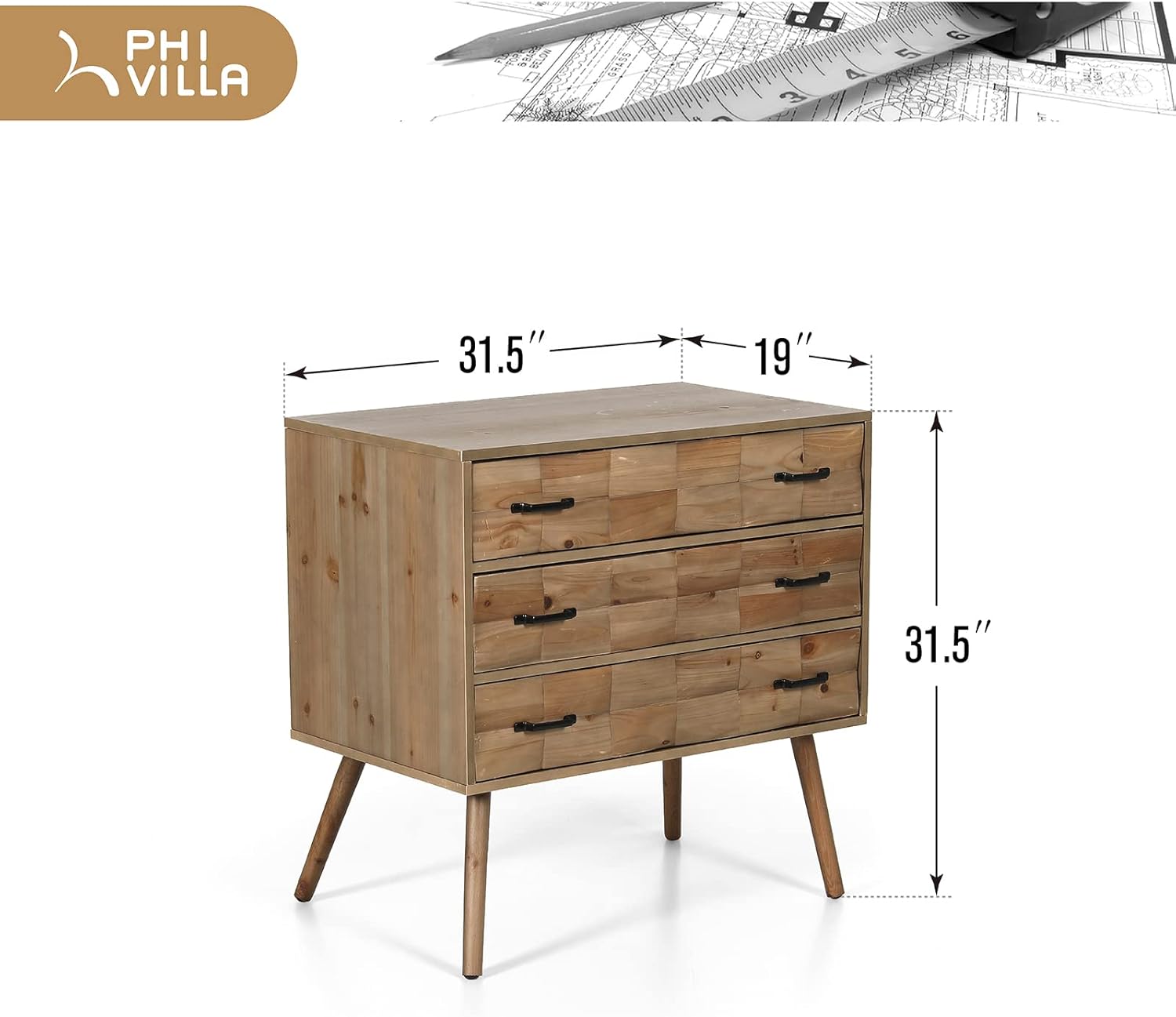 PHI VILLA Mid Century Modern Nightstand with 3 Drawers,Side Tables Bedroom Dresser Pine Solid Wood End Table with Storage Cabinet for Small Spaces Living Room,Bedroom Furniture