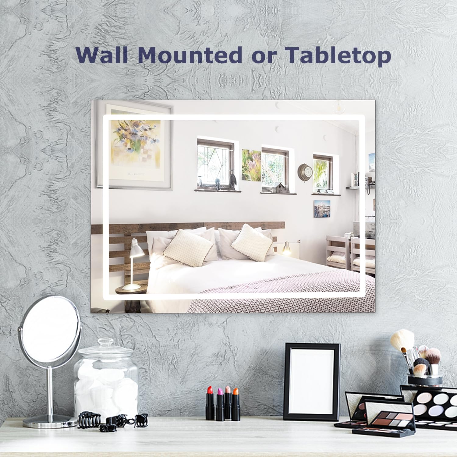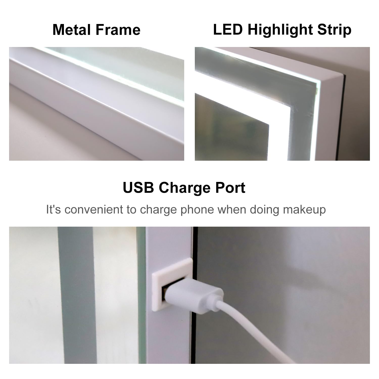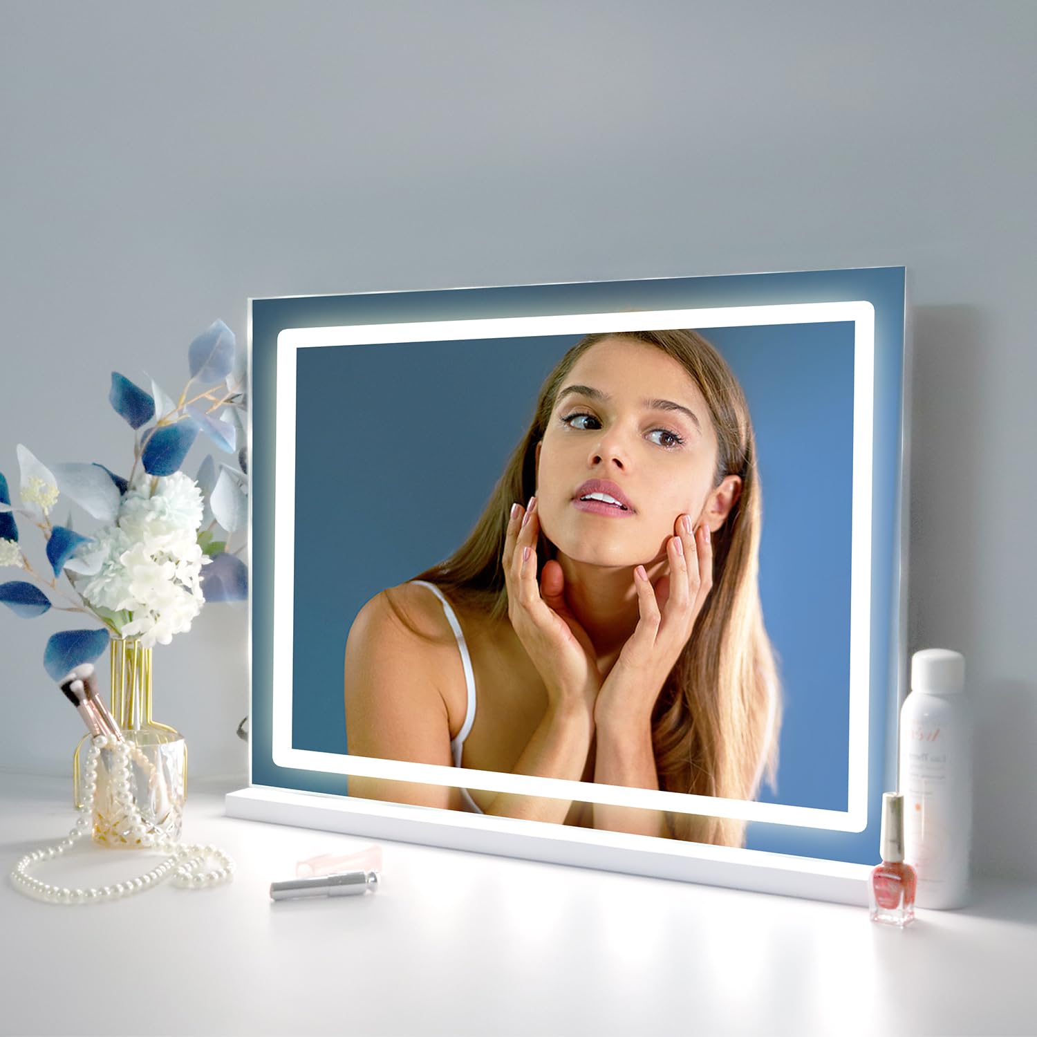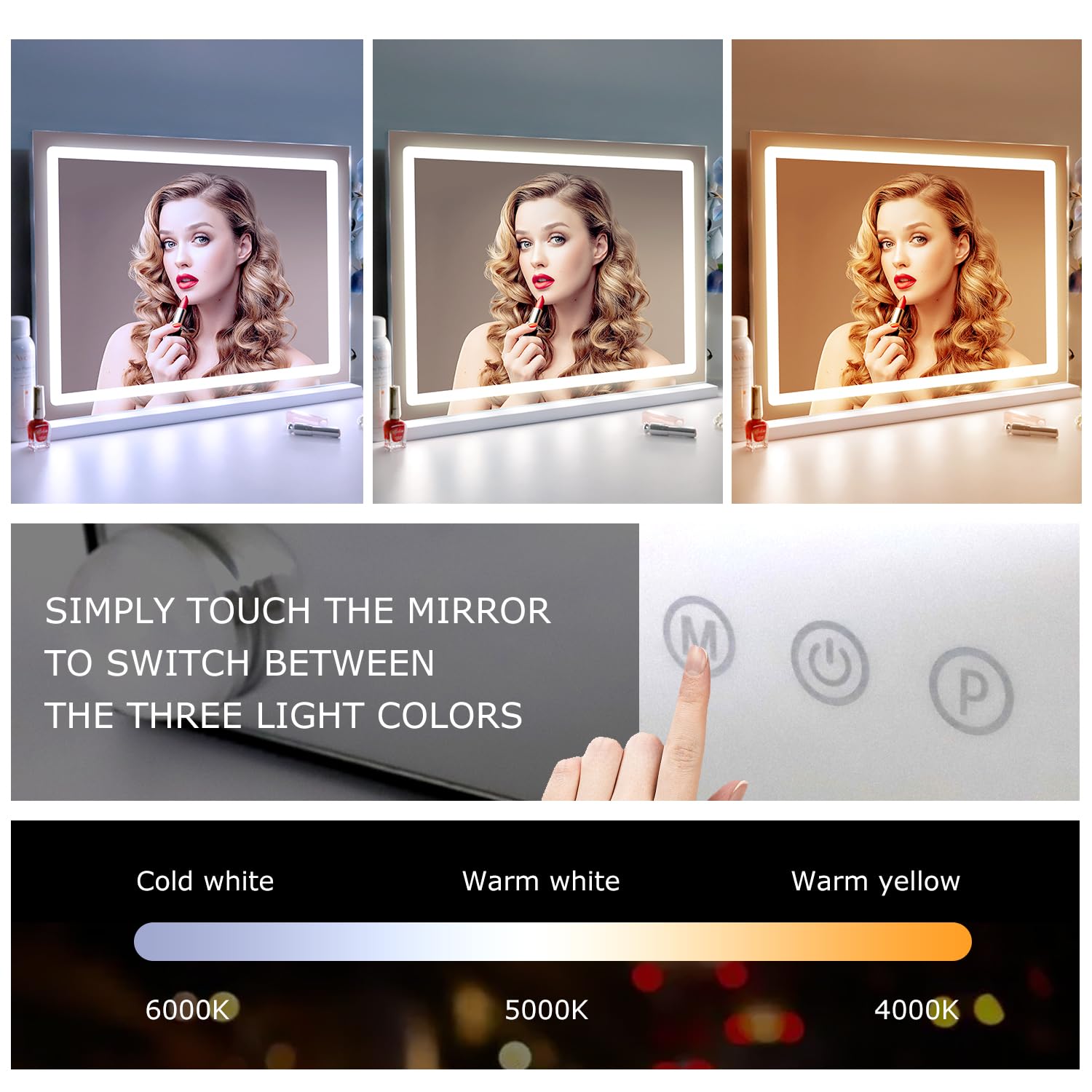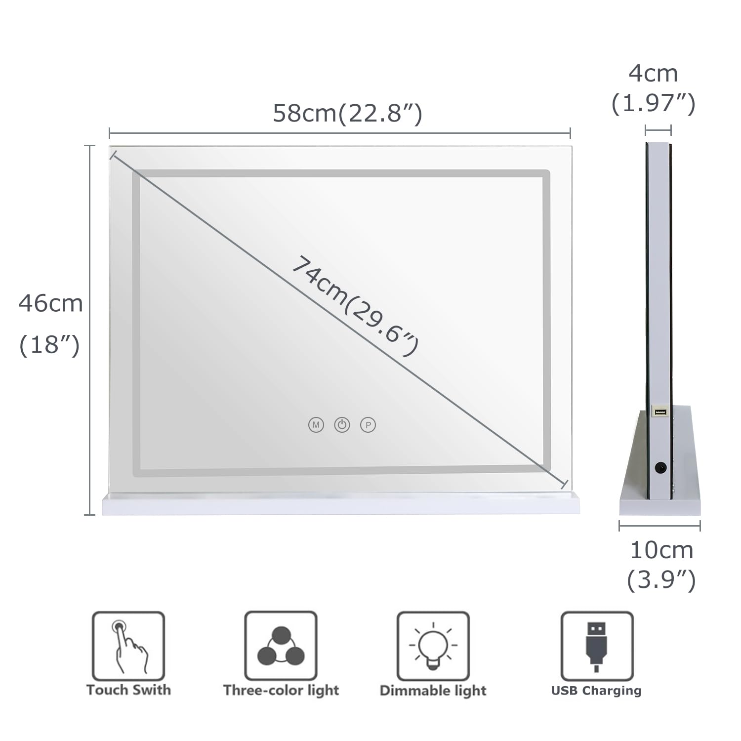 Makeup Vanity Mirror with Lights, 22.8"x 18.1" Large LED Lighted Mirror with 10X Magnification and USB Charging Port, Smart Touch 3 Colors Dimmable, Touch Control for Bedroom, White