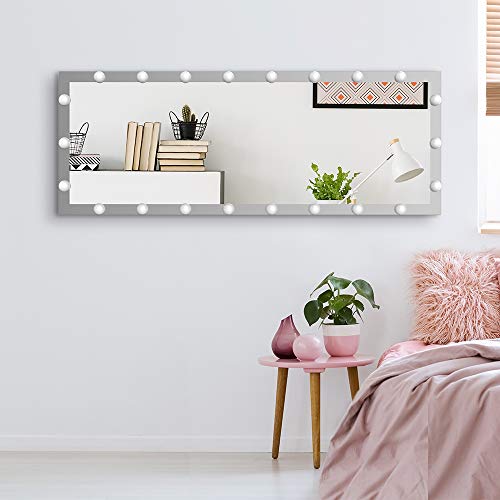Full Length Mirror with Lights, 63" x 24" Black Full Body Mirror with Lights, Hollywood Vanity Mirror with 22 LED Bulb Lights, 3 Colors, Smart Vanity Mirror (Pink)