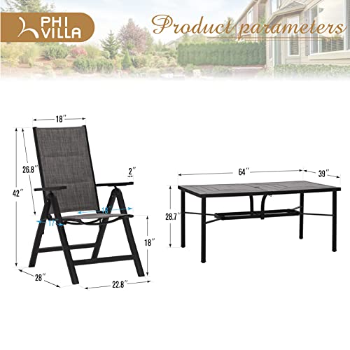 PHI VILLA 5 Piece Outdoor Patio Dining Table and Chairs Set, 1 Square Wood-like Top Patio Dining Table and 4 Folding Patio Wicker Chairs(1.57" Umbrella Hole)