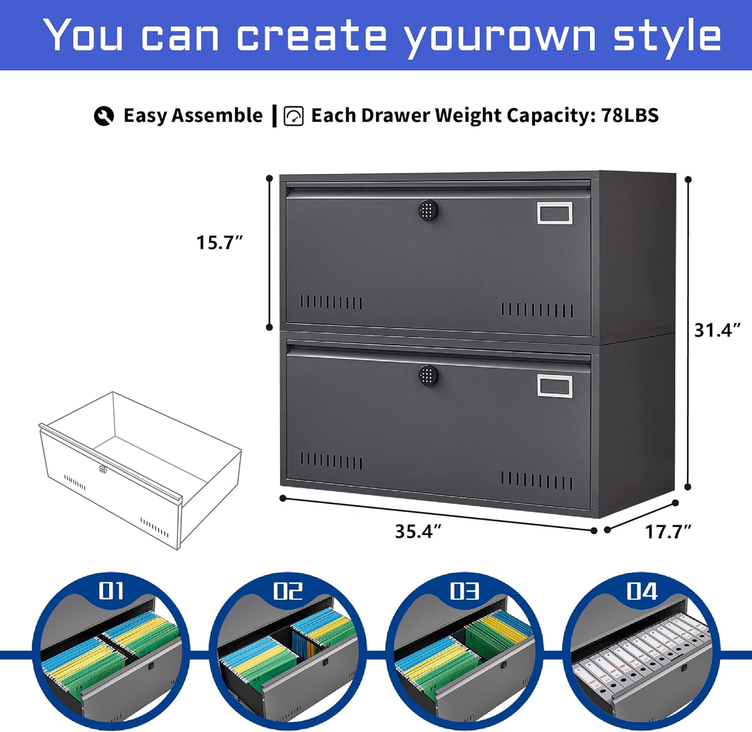 Petonline Lateral File Cabinet 2 Drawer, Metal Lateral Filing Cabinet with Smart Lock, Wide Filing Organization Storage Cabinets, Home Office Furniture for Letter/Legal/F4/A4 Size Files