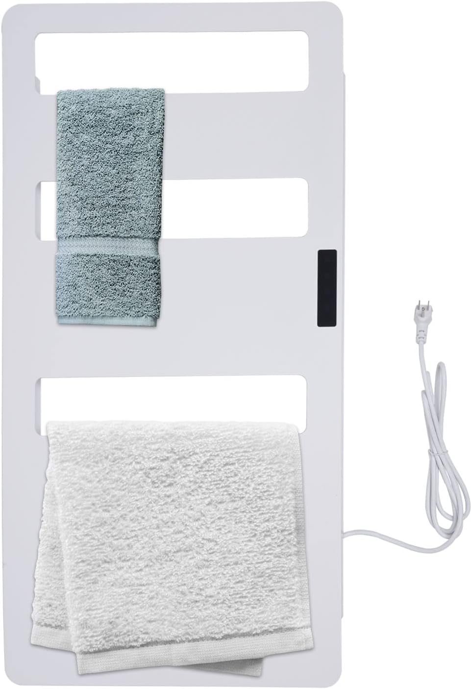 Modern 35”H Wall Mounted Heated Towel Rack for Bathroom, Graphene Towel Warmer Bath, Electric Towel Drying Rack Towel Heater with Timer Smart Touch for Hotels Bath Centers Home Bathroom(White)