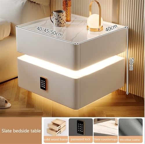 Smart Nightstand with 2 Drawer for Bedrooms, Modern End Side Table, Home LED Bedside Table for Bedroom, Storage Modern End Side Table (Color : Light Grey, Size : 19.7x15.7x19.7in)