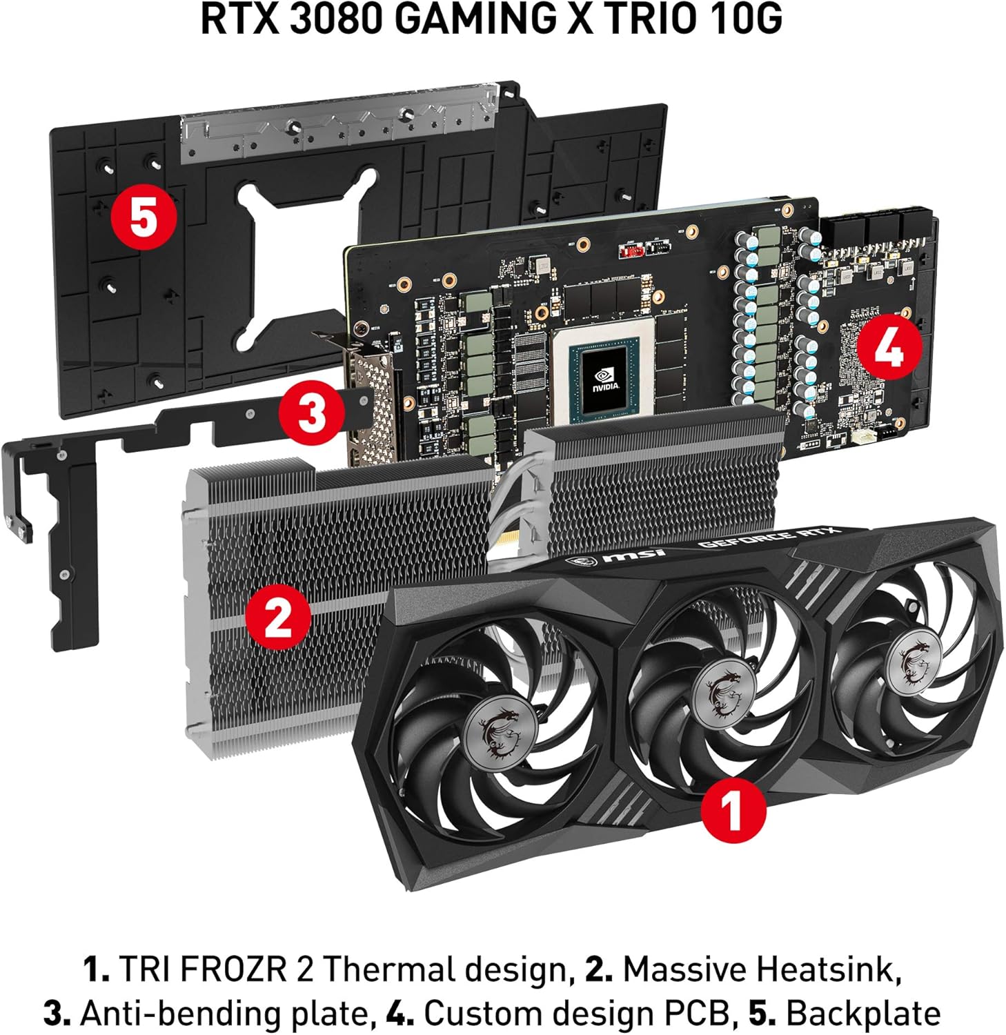 MSI Gaming GeForce RTX 3080 10GB GDRR6X 320-Bit HDMI/DP Nvlink Tri-Frozr 2 Ampere Architecture OC Graphics Card (RTX 3080 GAMING X TRIO 10G)