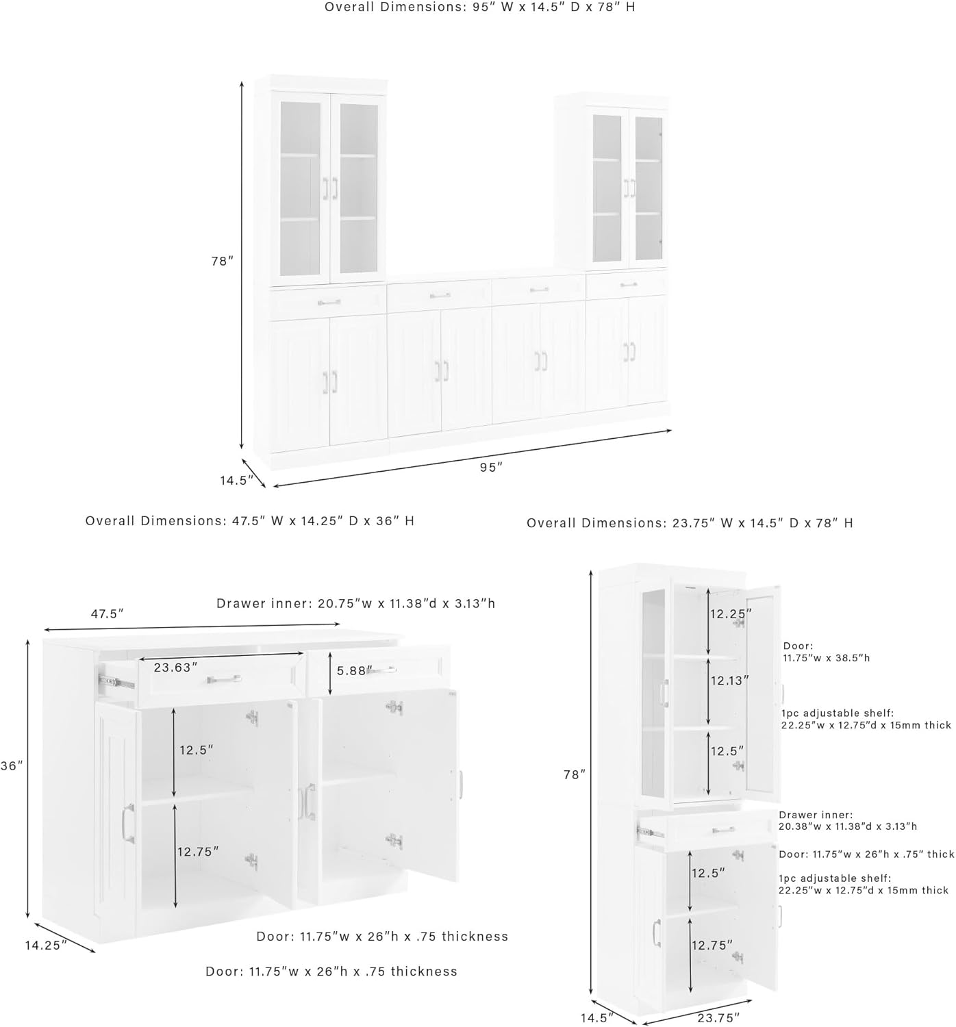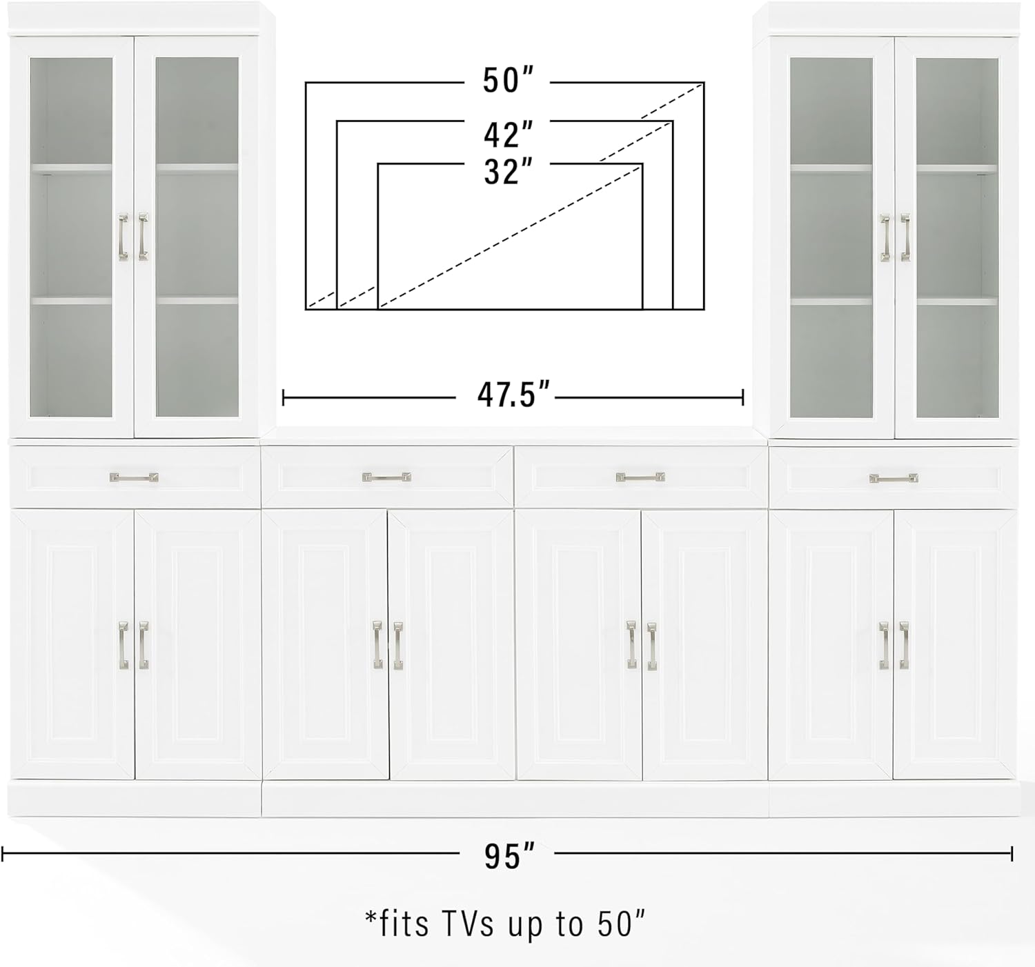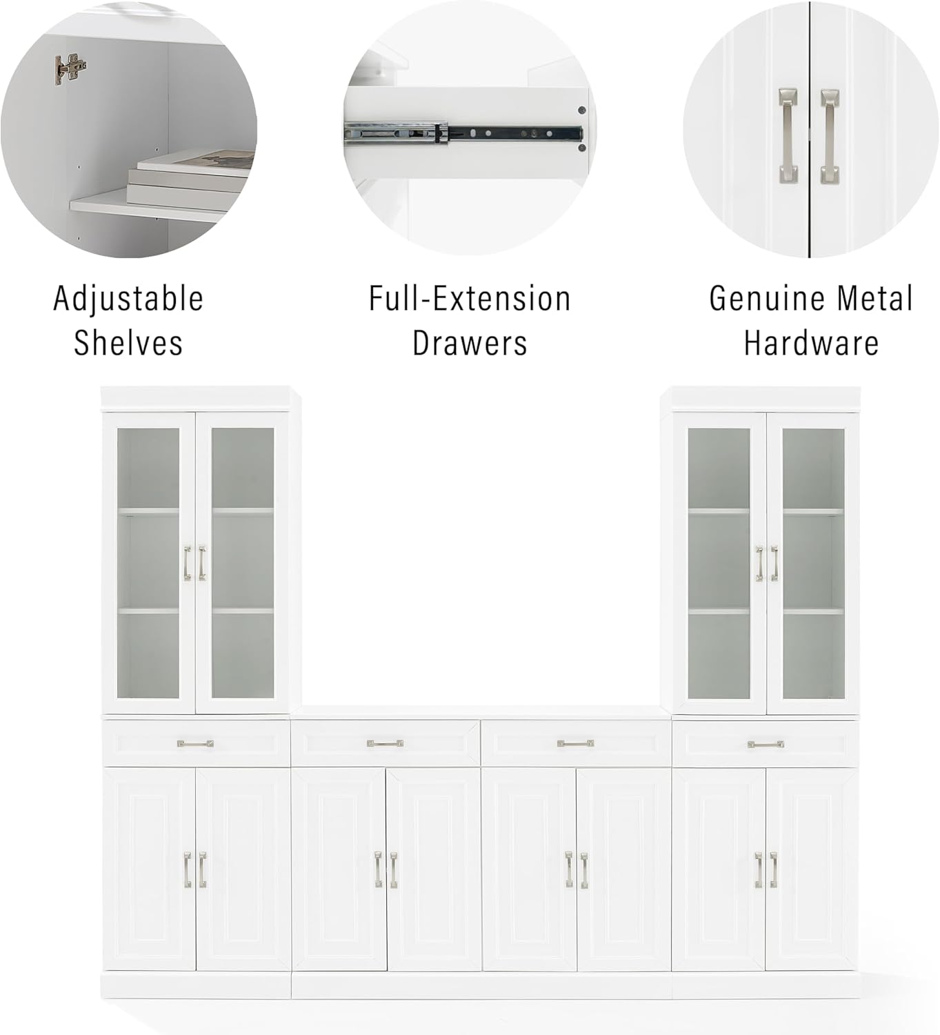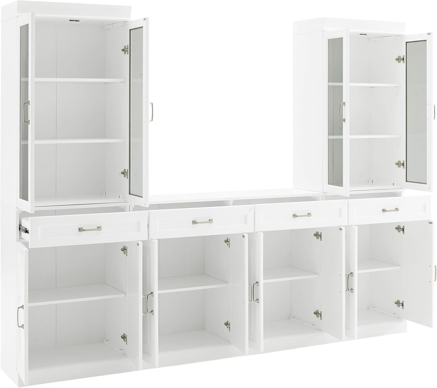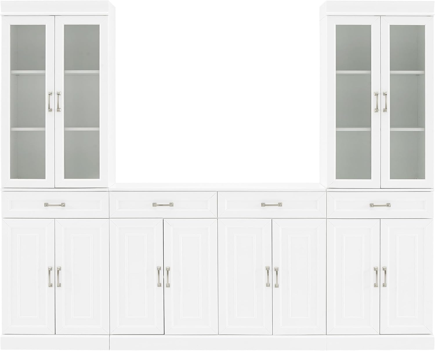 Crosley Furniture Stanton 3-Piece Sideboard and Glass Door Pantry Set, White