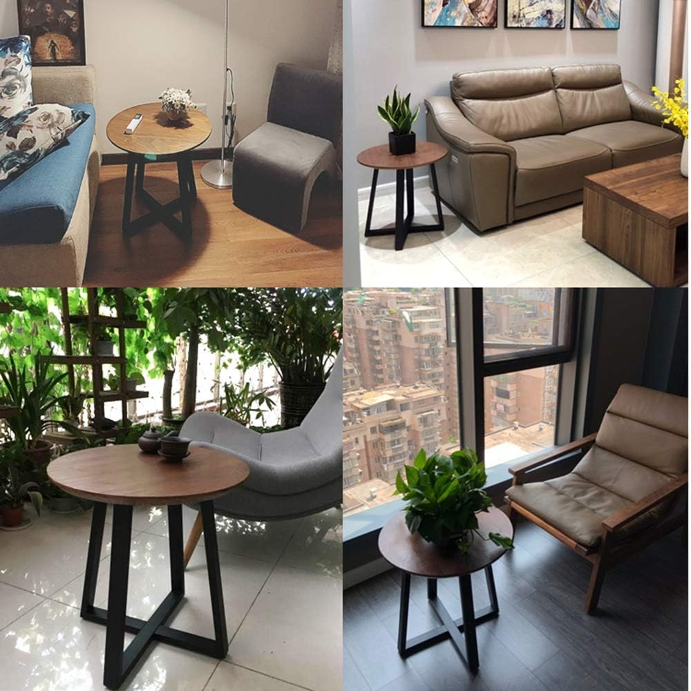 WFF Round Side Table Small Corner Table Wooden Sofa Bedside Table with Metal Legs Suitable for Living Room Bedroom