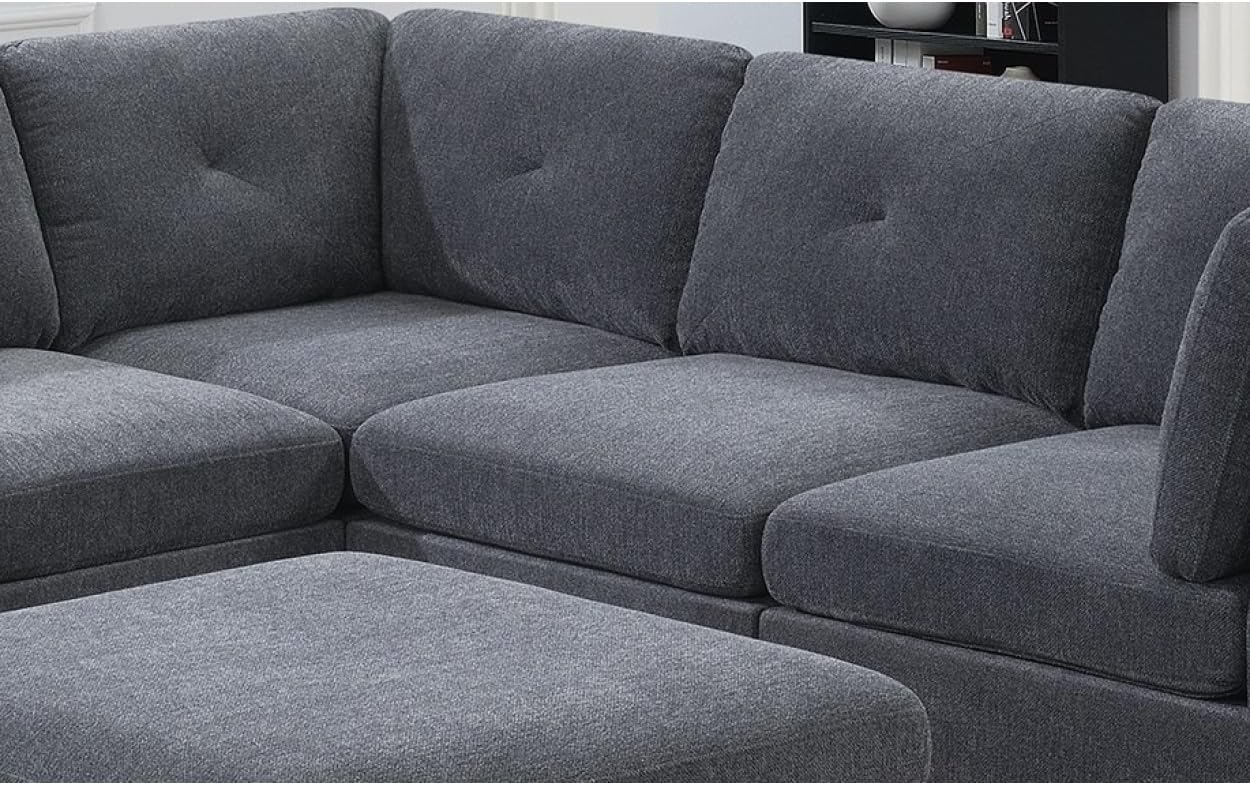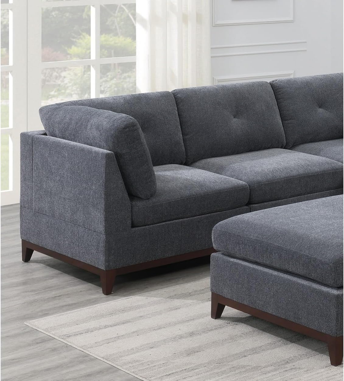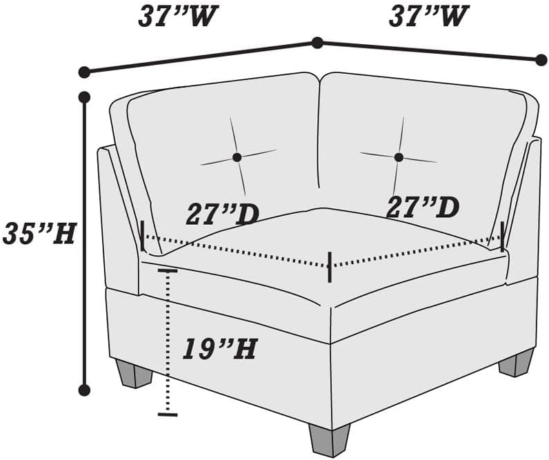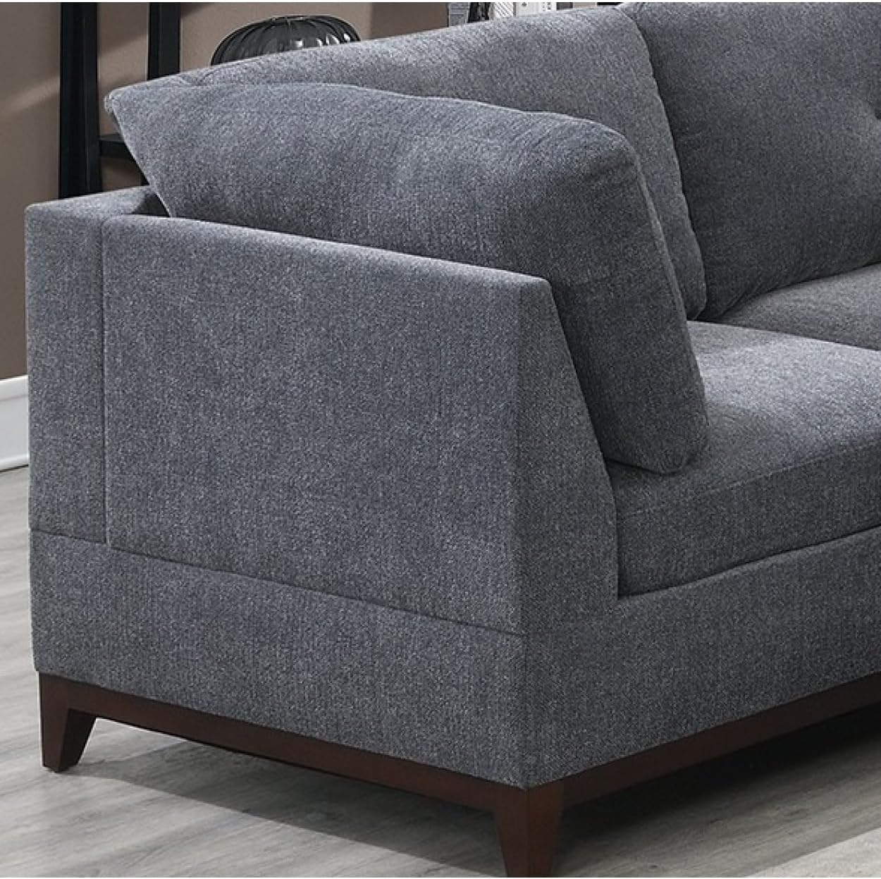 Modular Living Room Furniture Corner Wedge Ash Chenille Fabric 1pc Cushion Wedge Sofa Couch Exposed Wooden Base