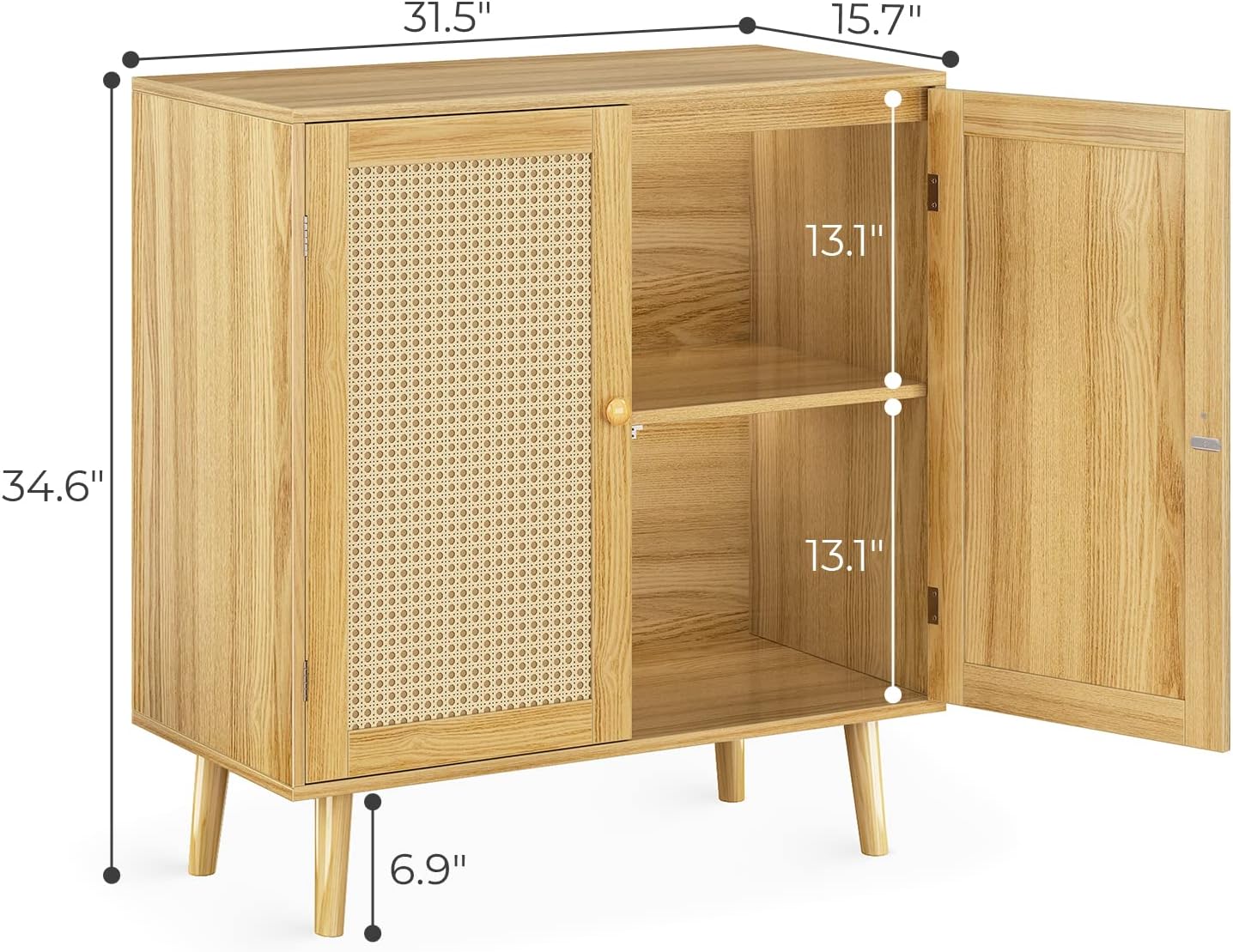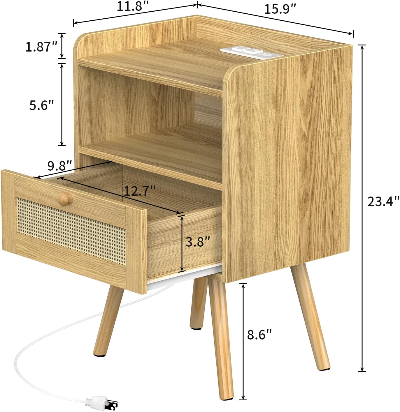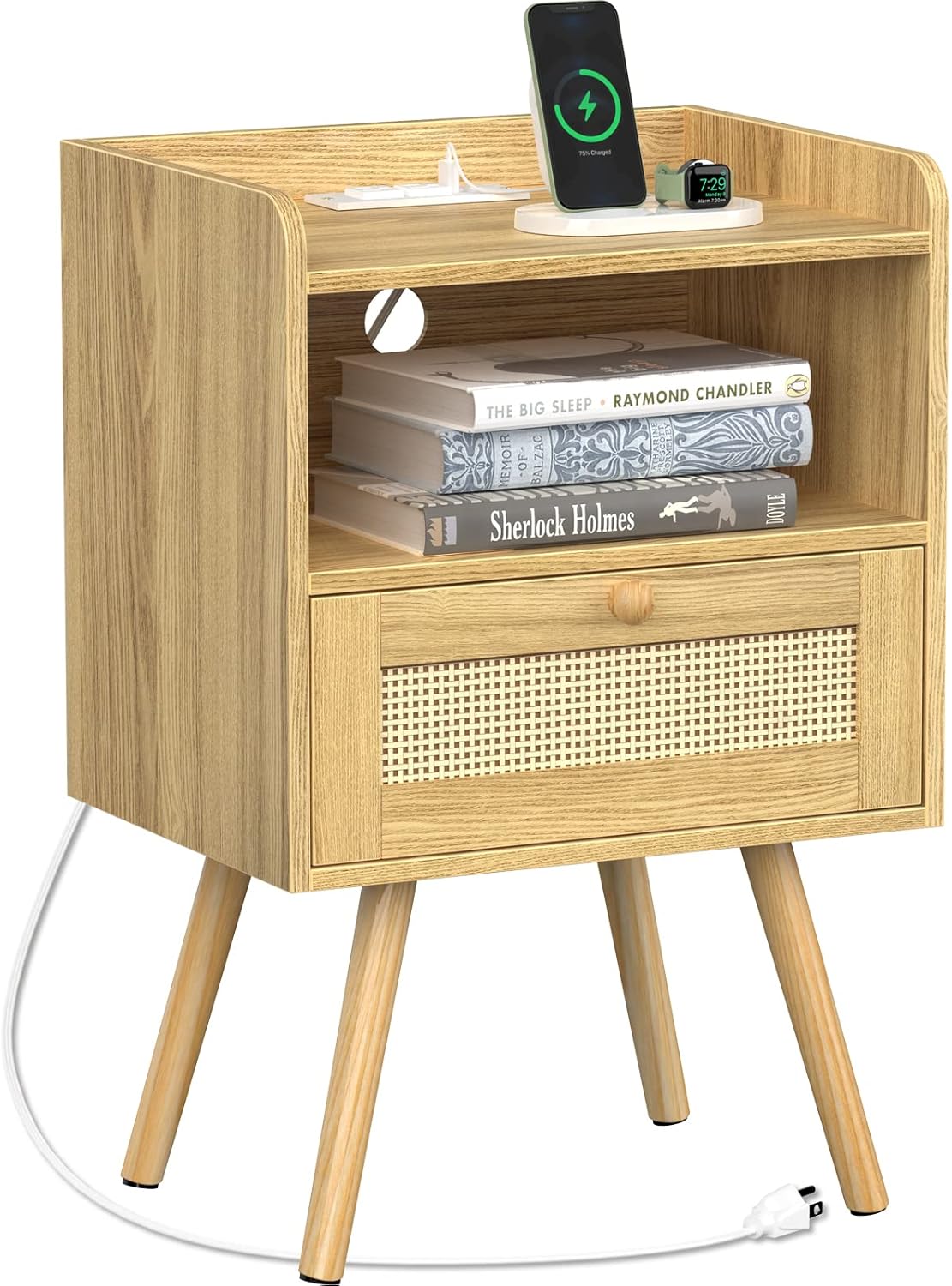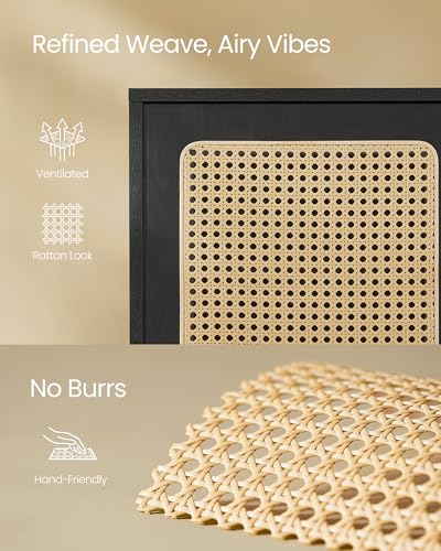 Buffet Cabinet with Storage and SUPERJARE Nightstand with Charging Station & Rattan-Like Decor Drawer for Bedroom, Living Room, Dormitory - Natural