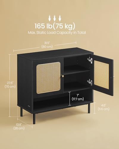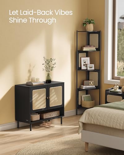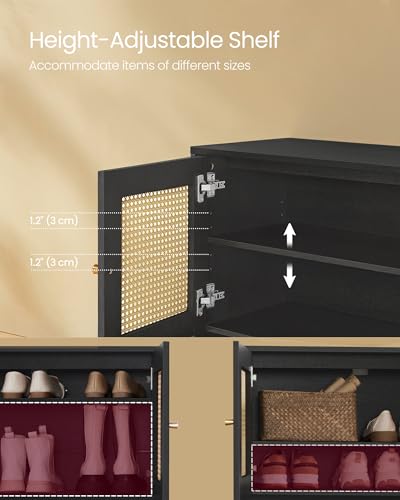 VASAGLE Shoe Cabinet, 3-Tier Shoe Storage Organizer, Shoe Shelf with Rattan-Look Doors, Height-Adjustable Shelf, Freestanding Cabinet, Steel Legs, Boho Style, Oak Beige ULBC049N01
