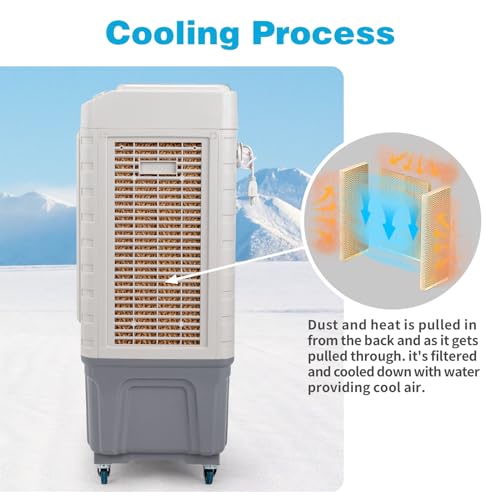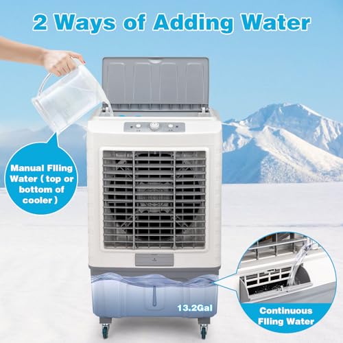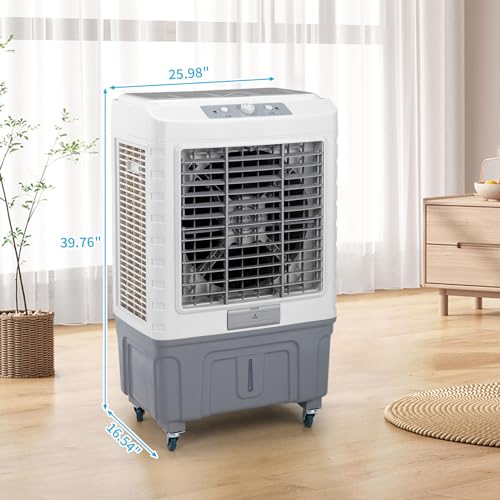 ROVSUN 13.2Gallon Evaporative Air Cooler, 4100CFM Portable Swamp Cooler with Knob Control, Oscillation, 3 Speeds & 50L Water Tank, 3-IN-1 Cooling Fan for Home Office Garage Outdoor