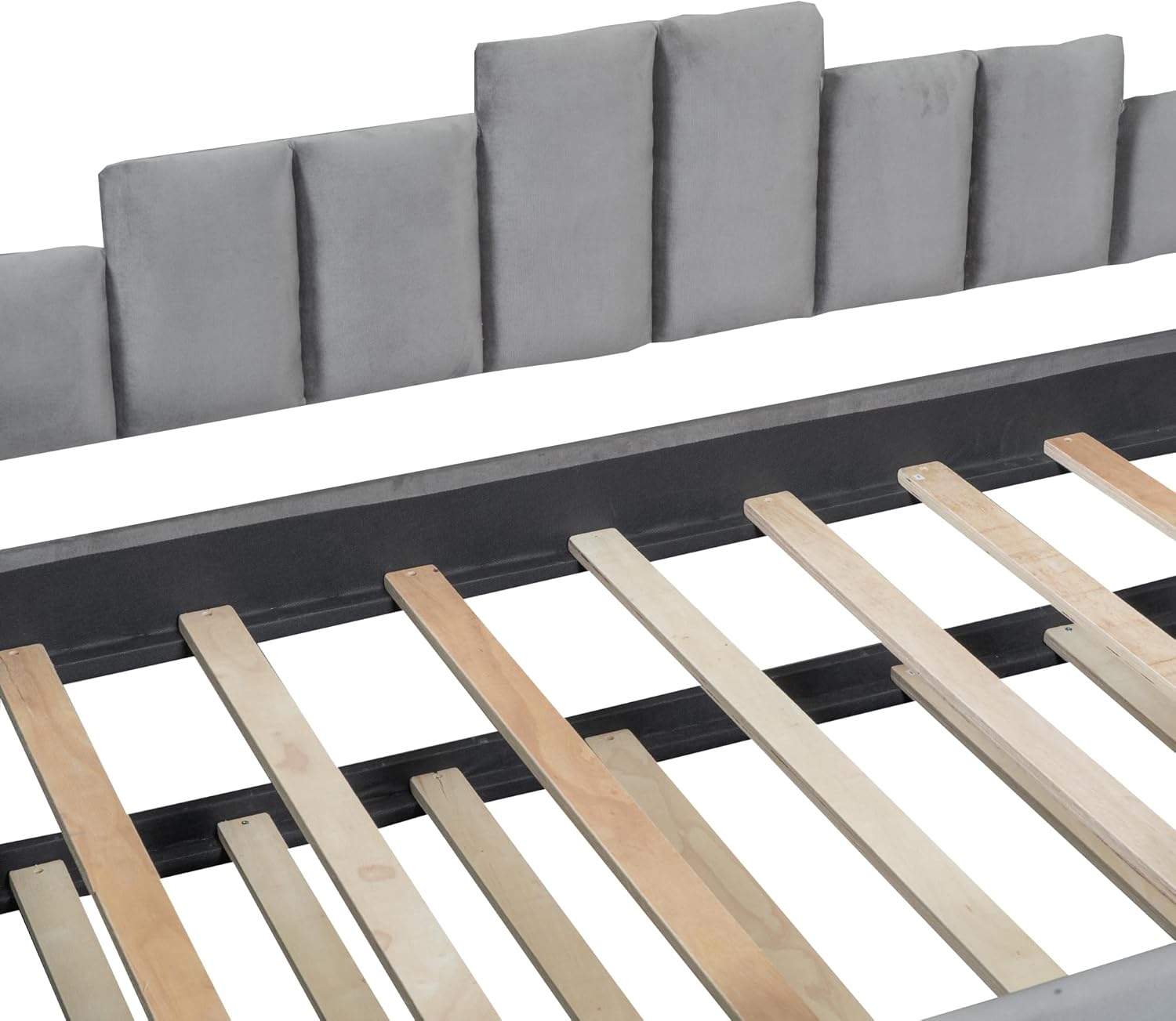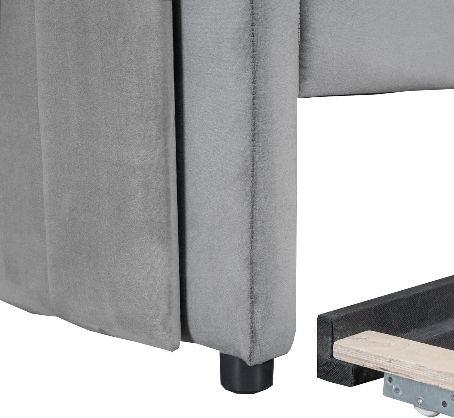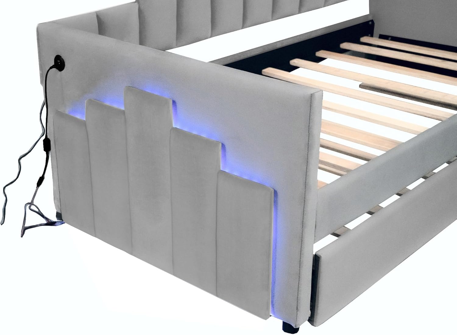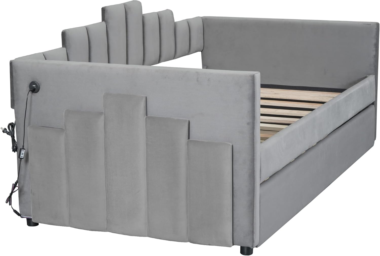 Twin Size Upholstered Daybed with Light and USB Port,Multi-Function Velvet Bed Frame w/Trundle,Atypical Stripes,Space-Saving&Easy Assembly,for Bedroom, Guest Room,Gray
