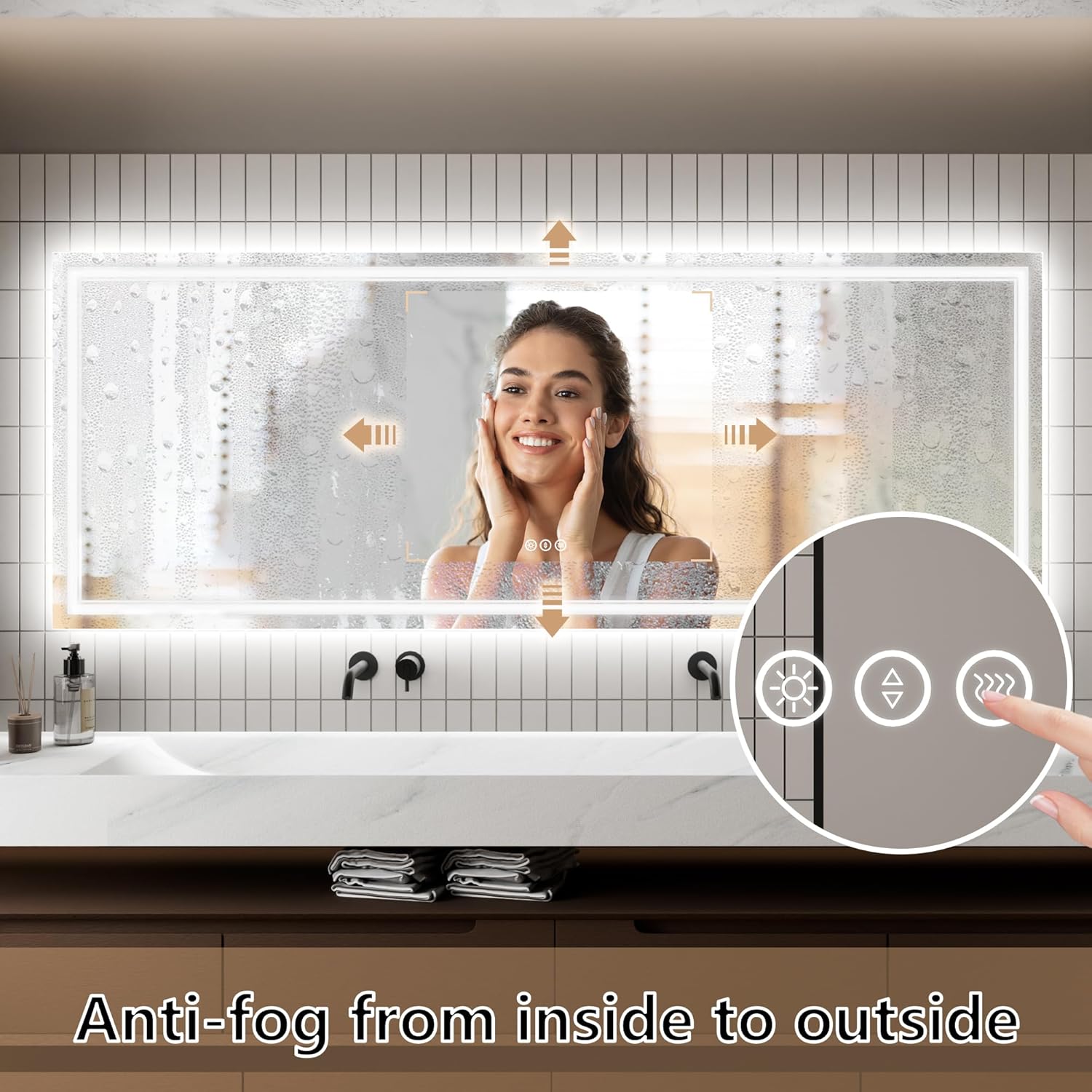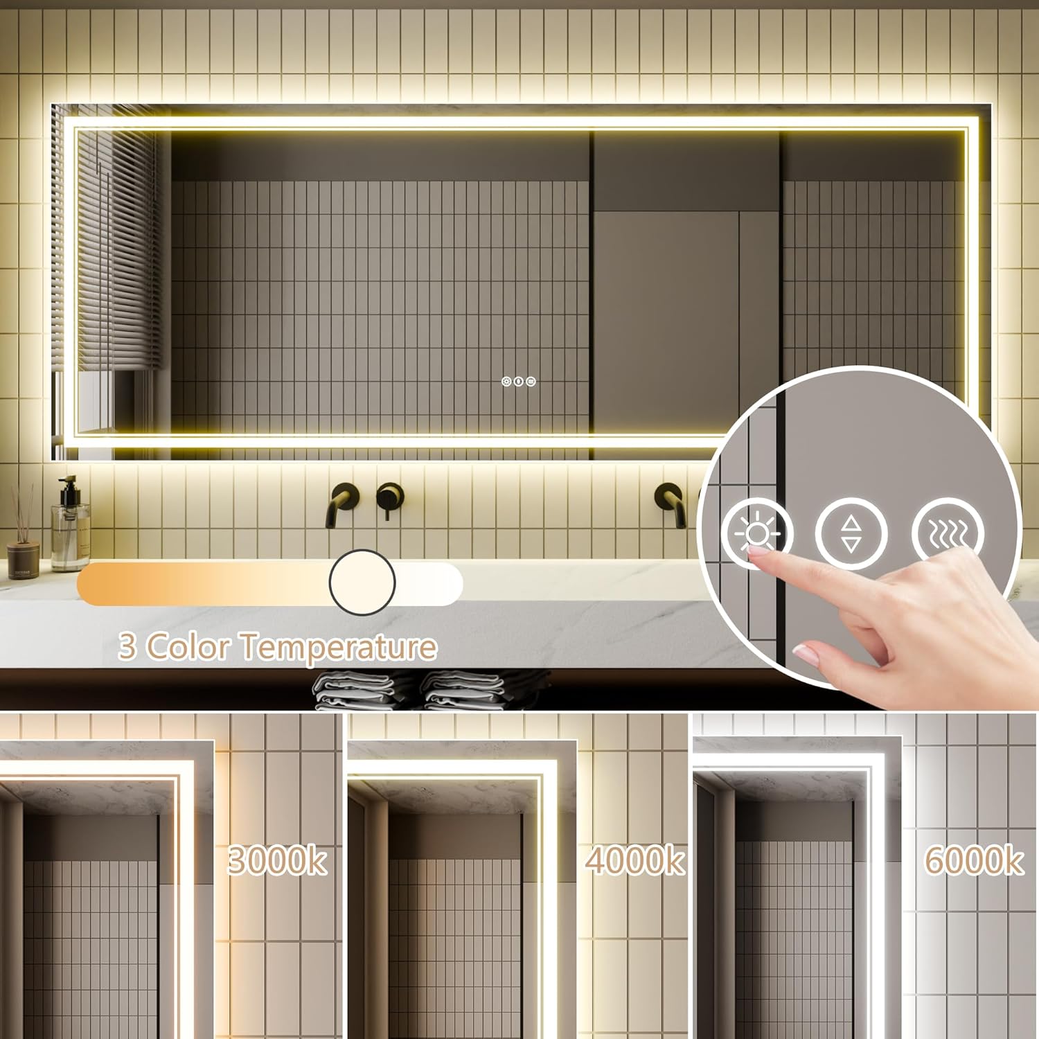 LED Bathroom Mirror, Mirrors for Wall with Smart Touch Button, Anti-Fog, Memory Function, Stepless Dimmable Makeup Mirror 32x84 inch Bathroom Vanity Mirrors with Lights(Horizontal/Vertical)