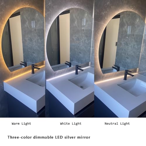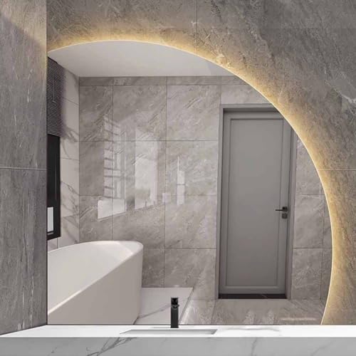 70cm Decorative Mirror, Half Moon Bathroom Mirror 100cm, Anti-Fog Vanity Mirror 90cm, Backlit LED Smart Wall Mirror 80cm,Touch Switch(Right Under cut,100cm/40)